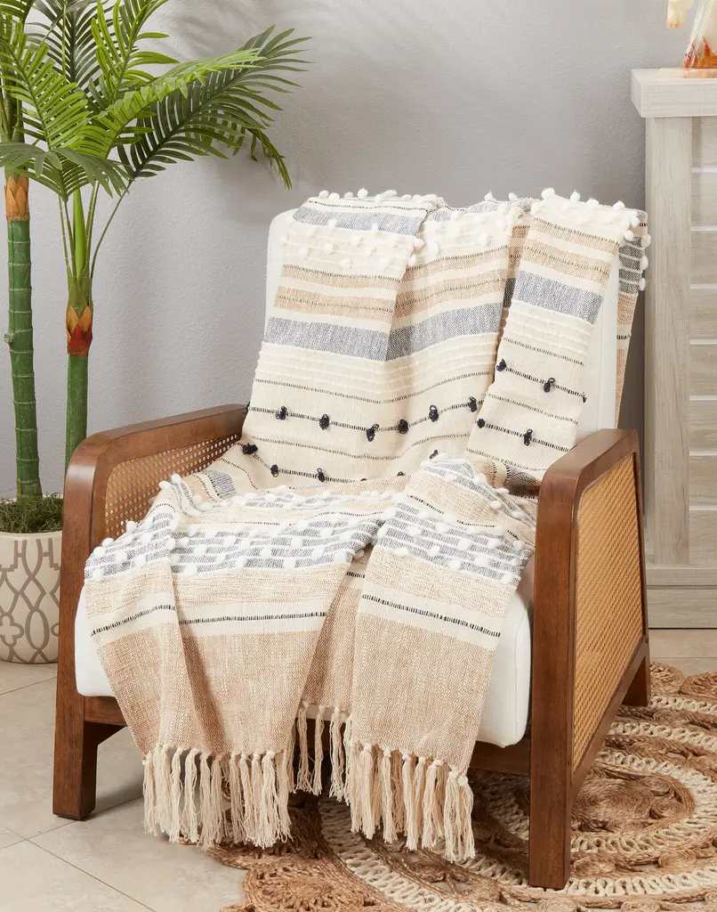 Experience the ultimate in comfort and style with this Woven Stripe Throw Blanket. The soft texture and stylish design make it the perfect addition to any living space. Whether you're snuggling up on the couch or adding a decorative touch to your bed, this high-quality throw is sure to impress.