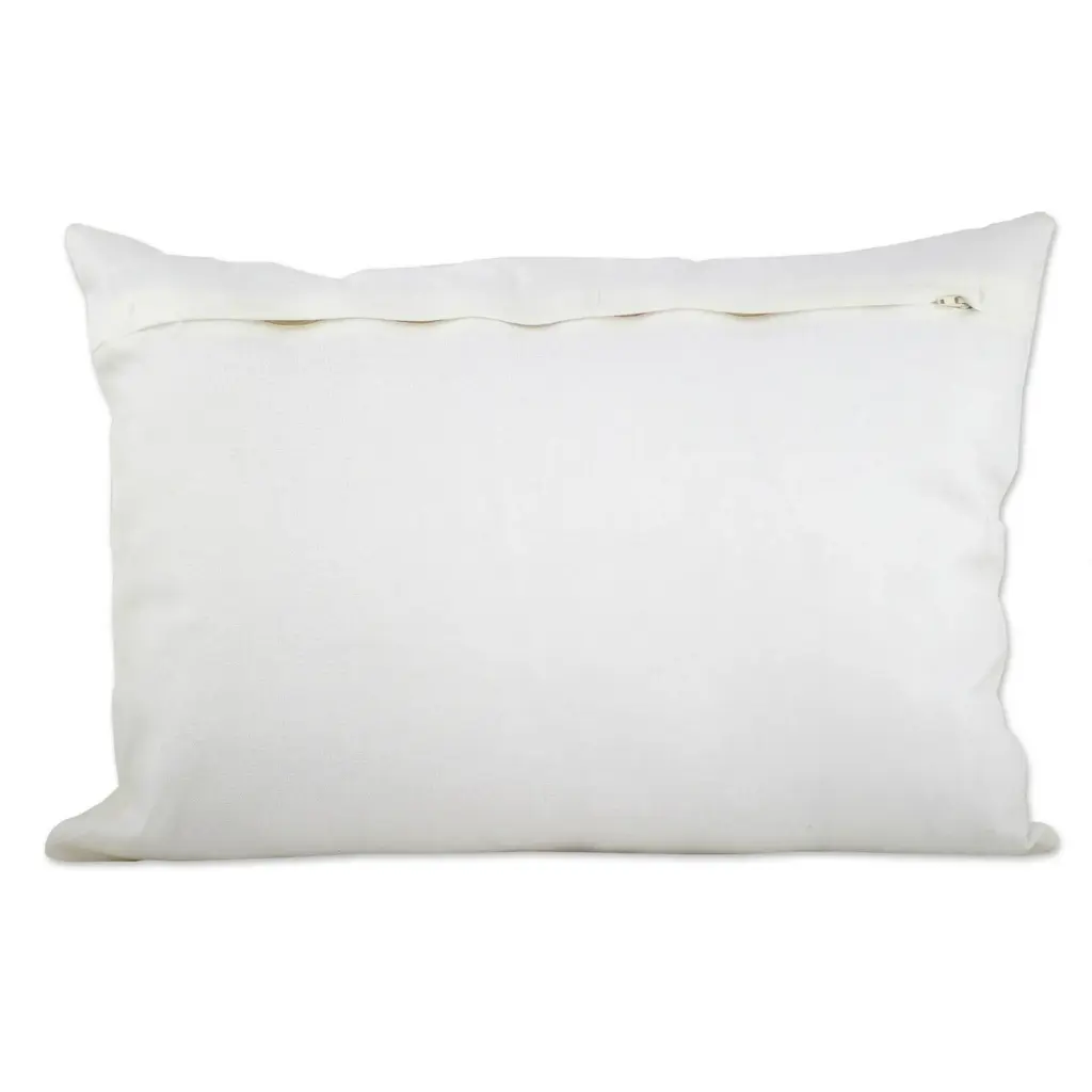 Whimsical flowers dance across a pair of crisp, cream-colored all-cotton cushion covers in a design by Indian artisan Seema. The machine-embroidered floral pattern is featured on the front side only with a solid color back, which features a zipper closure.