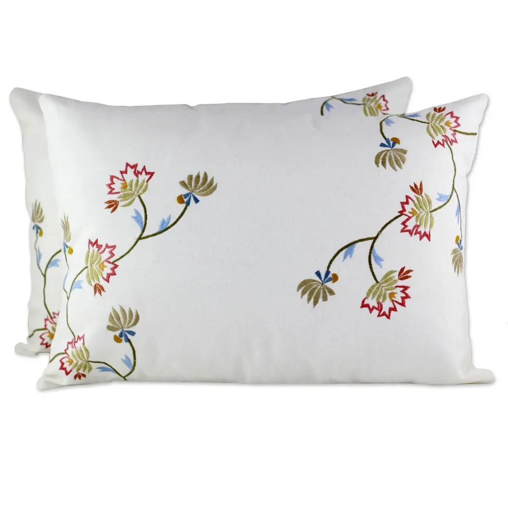 100% Cotton Cushion Covers (Pair) Embroidered Flowers- Floral Vines