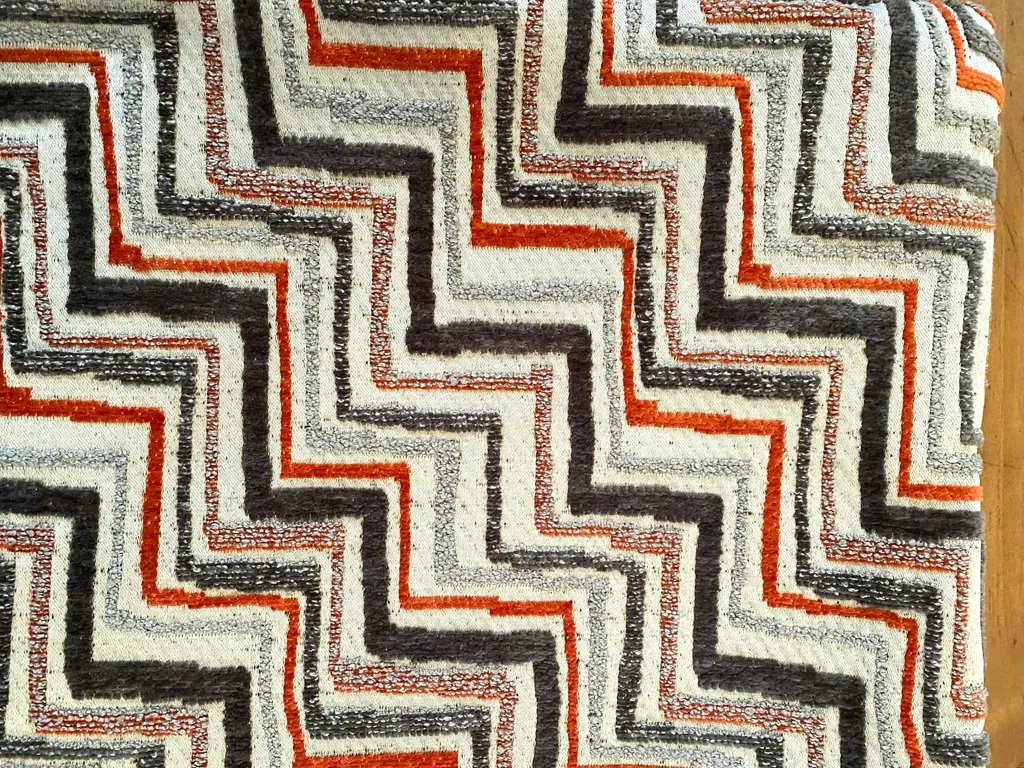 A rare find! Authentic vintage 1970’s flocked velveteen zig zag chevron heavy upholstery pillow covers with zippers. This style is popular today again, don’t miss out on the true vintage pieces! Set of 3.