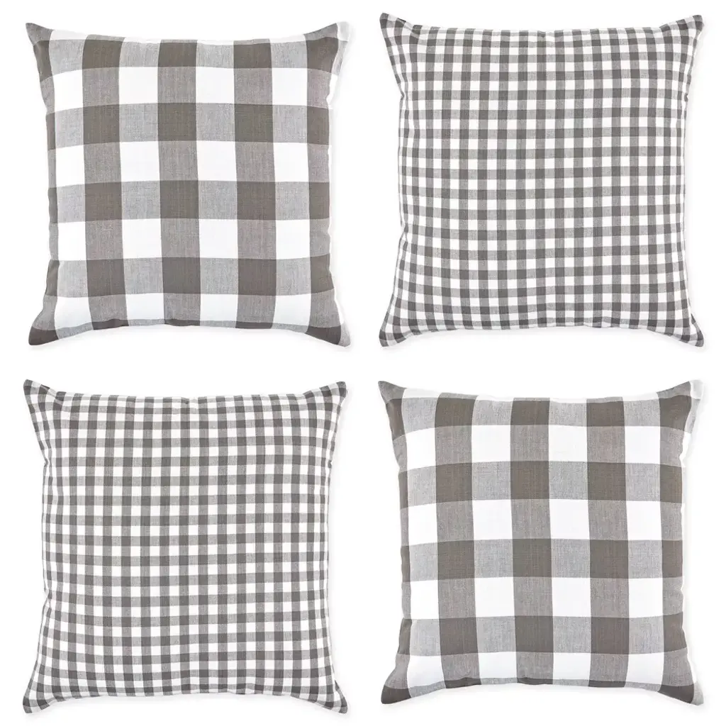 4Pk 18"x18" Gingham Buffalo Check Assorted Square Throw Pillow Covers Gray/white - Design Imports