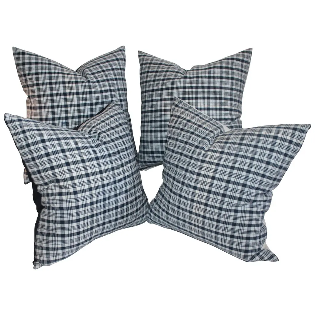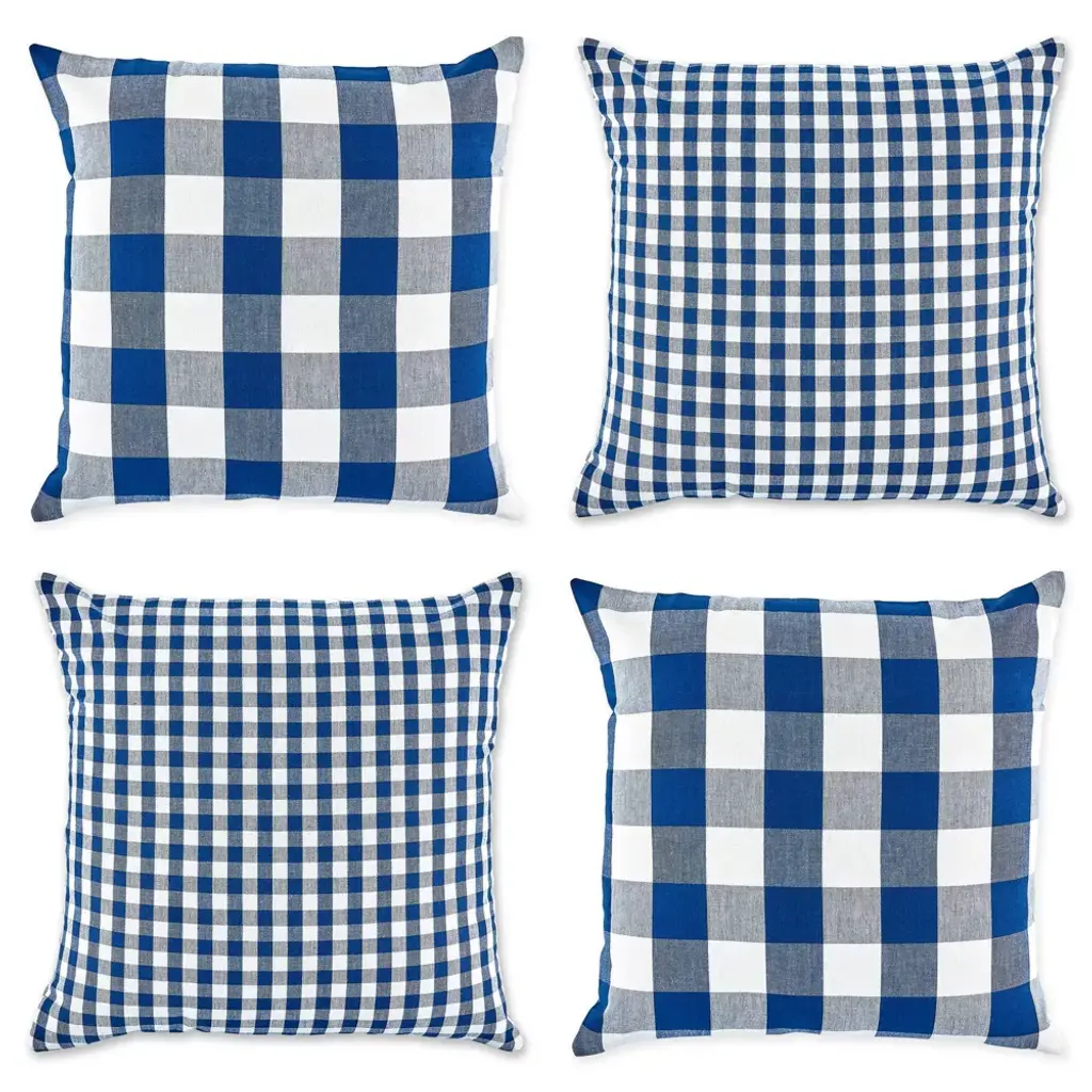 4Pk 18"x18" Gingham Buffalo Check Assorted Square Throw Pillow Covers Navy/off White - Design Imports: Cotton Fabric, Hidden Zipper Closure