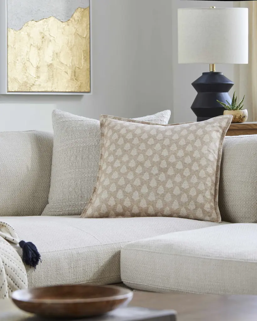 Adonia Tan Throw Pillow - 20" Square Pillow Cover With Down Insert