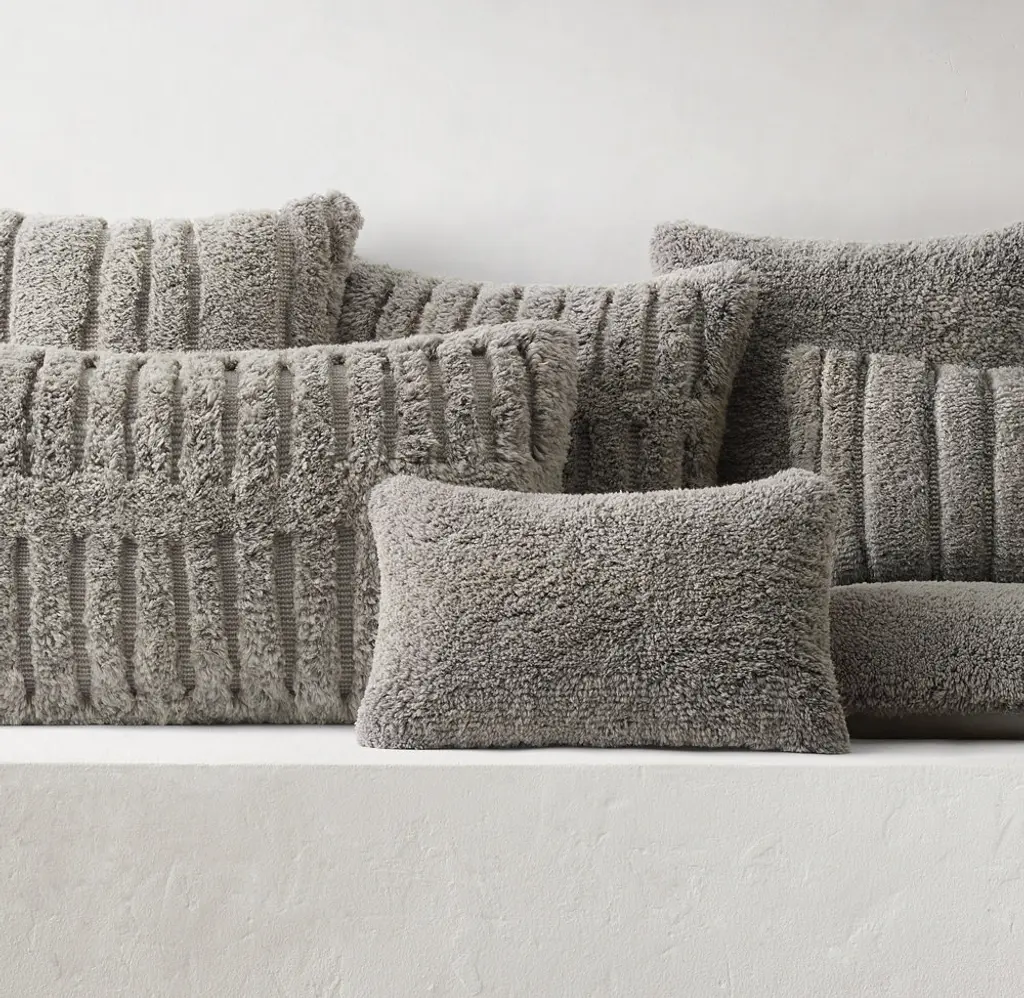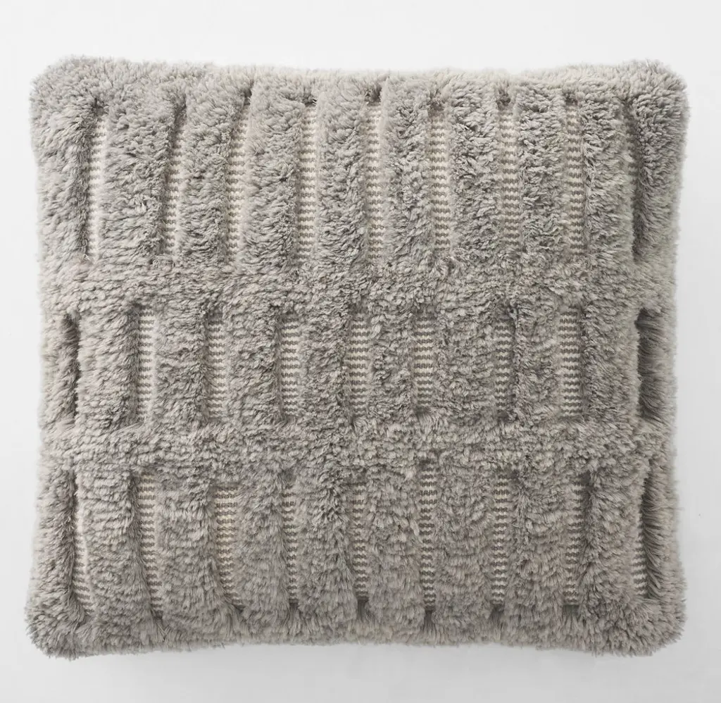 FREE SHIPPING Parallel lines and dashes appear hewn into the rich pile of our Allali pillow cover, evoking the organic design and high-low dimension of authentic Moroccan carpets. Crafted by master rug artisans, the pile is knotted by hand in pure merino wool, then hand sheared to produce a textural finish with natural softness and luster.