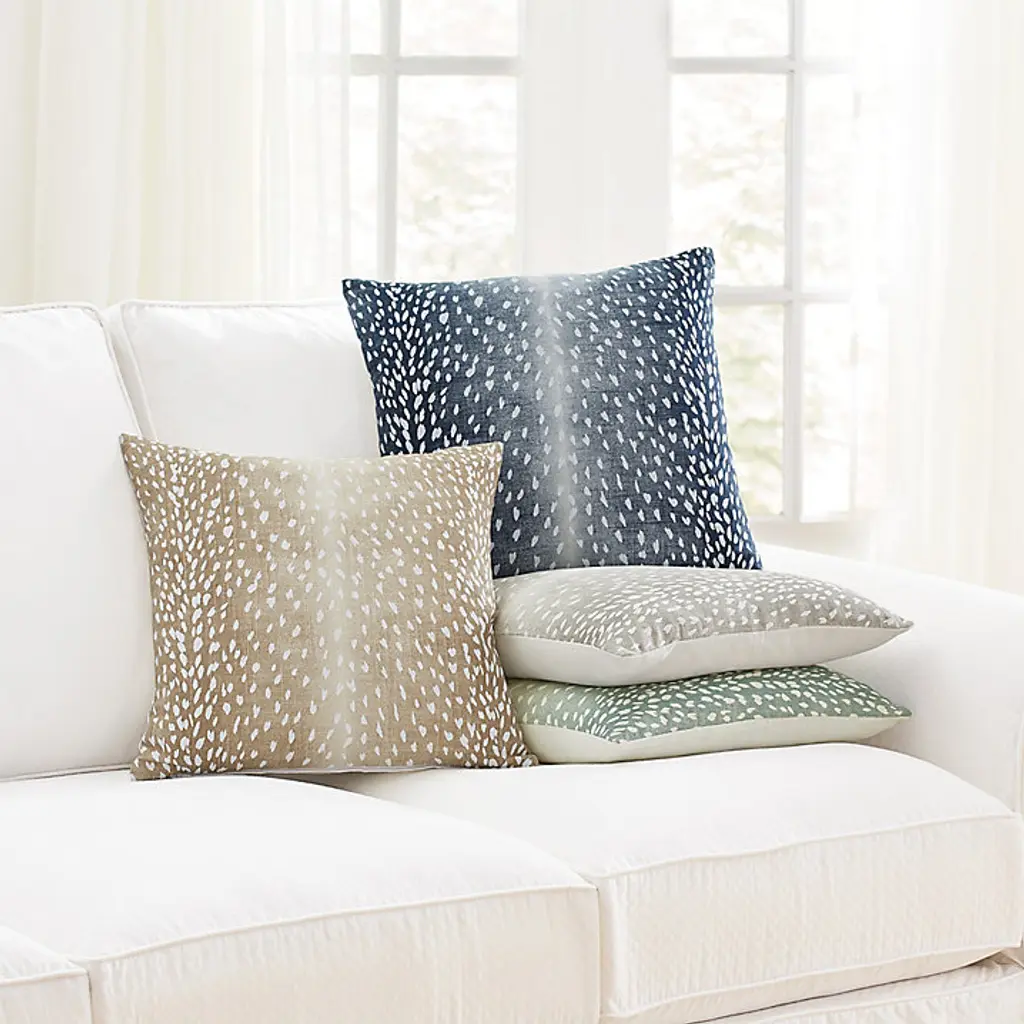We never bow to decorating rules, but we do believe that every well designed room needs a little animal print. Our luxe Antelope Pillow Cover is an easy, comfortable way to layer in the look. This fashion-forward throw pillow cover is printed on linen-rayon blend with solid off-white reverse. Antelope Pillow Cover features: