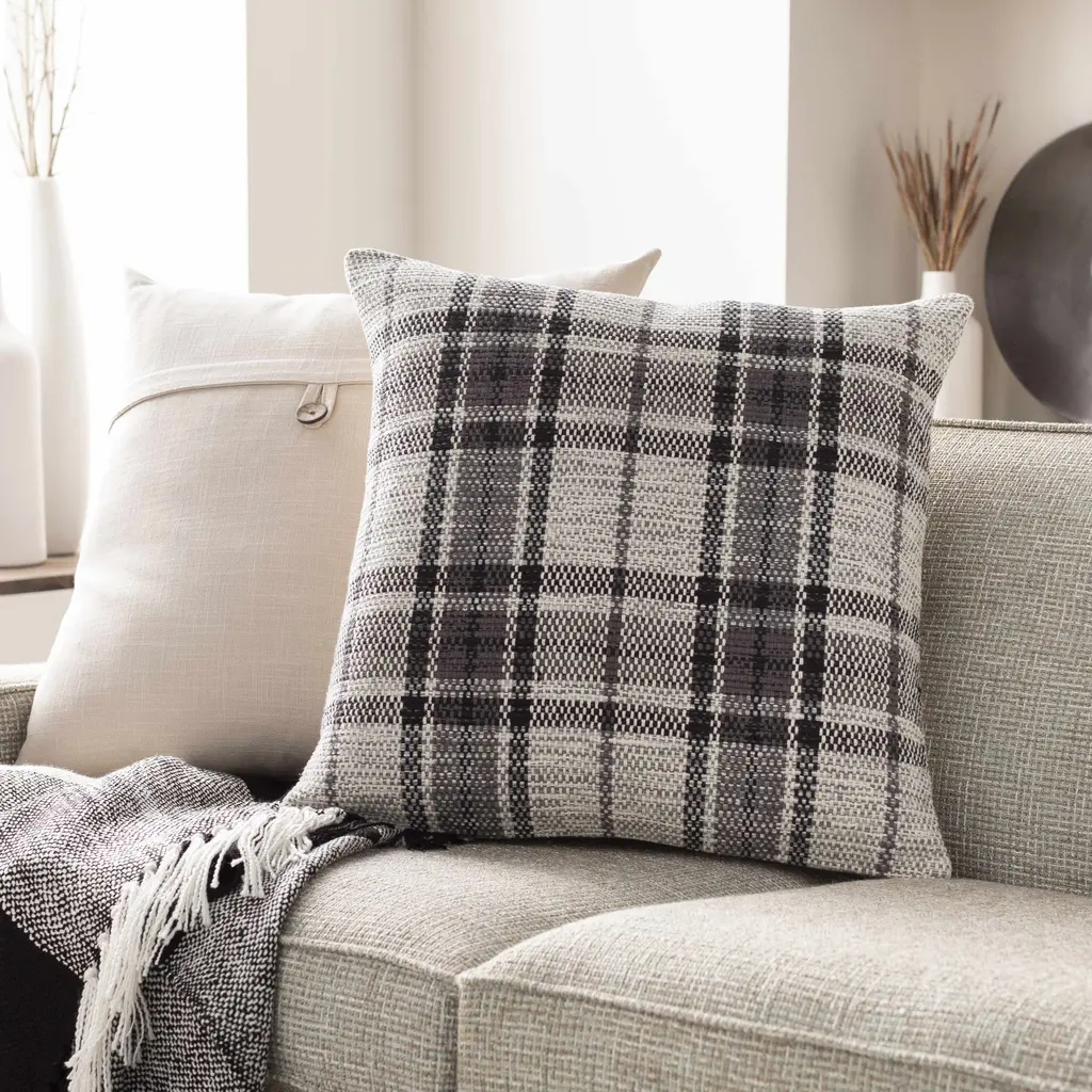 Aran Black Plaid Check Throw Pillow - 18"h X 18"w Square Pillow Cover With Down Insert