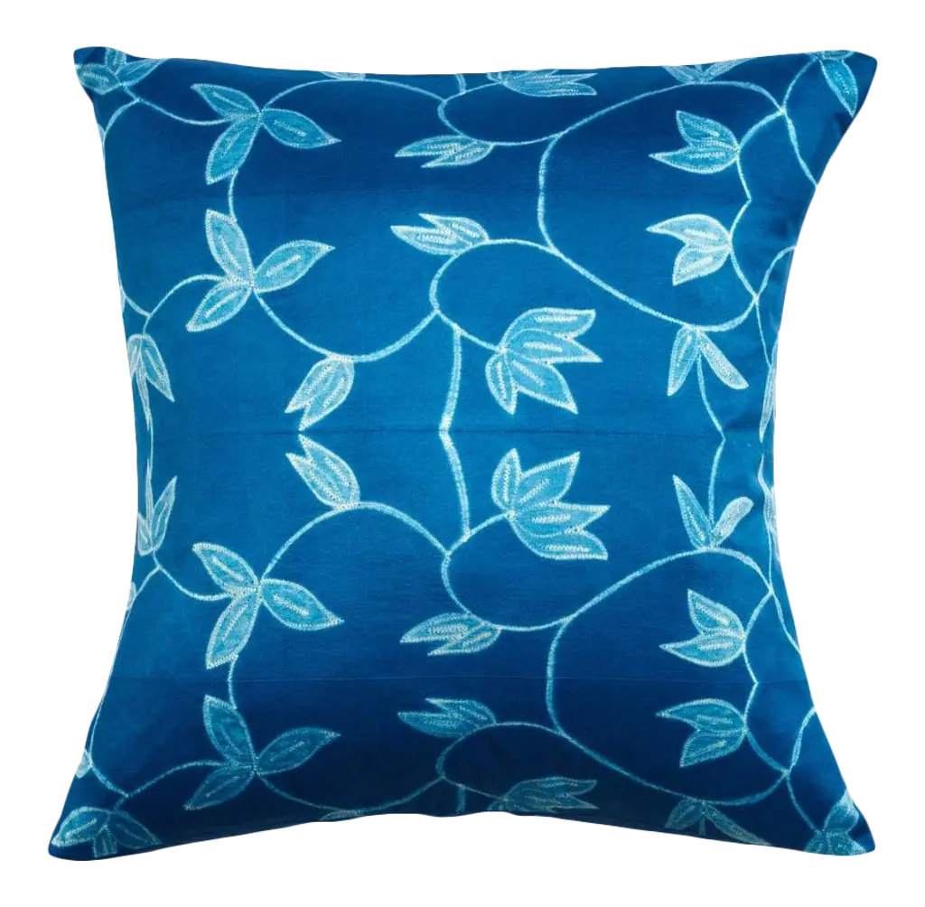 A pretty blossom pattern radiates outward on this pair of cushion covers from the artisans of India's SEWA organization. Hand crafted from cotton, each cover features an embroidered vine and floral motif on the front and a plain backing. Lined with cotton, the covers include zippered closures for inserting and withdrawing your favorite cushions. SEWA, which stands for Self Employment Women Association, works to empower underprivileged women by supplying them with self-employment resources. Each purchase from SEWA goes directly towards the rehabilitation of affected artisans.