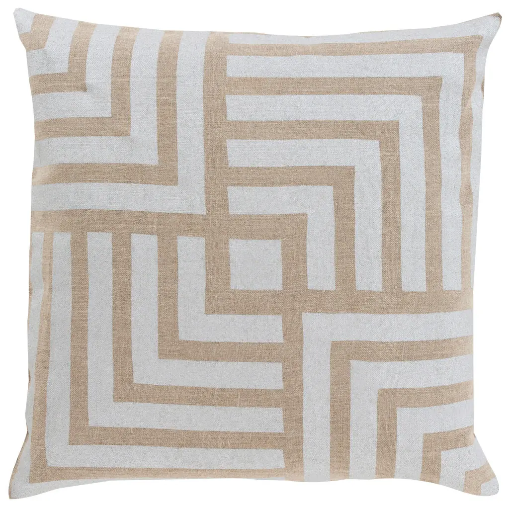 Atworth Tan Geometric Maze Throw Pillow - Clearance - 22" Square Pillow Cover With Down Insert