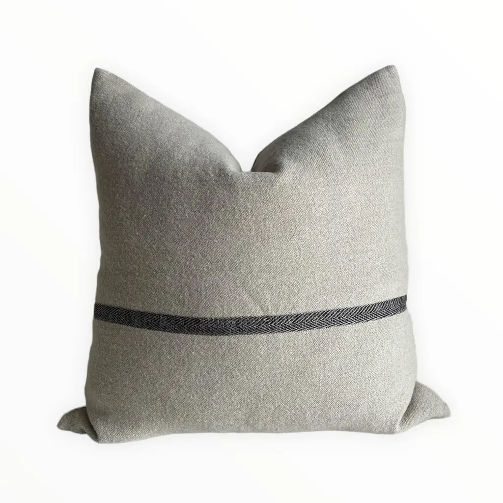 Belgian Linen And Wool Oversize Pillow Cover In Oatmeal And Coal