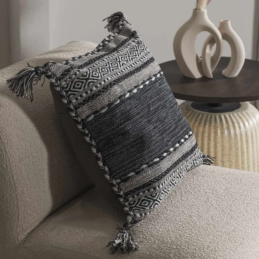 Bensalem Black Geometric Fringe Throw Pillow - 18" Square Pillow Cover