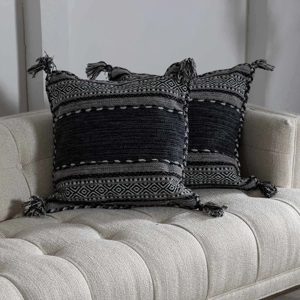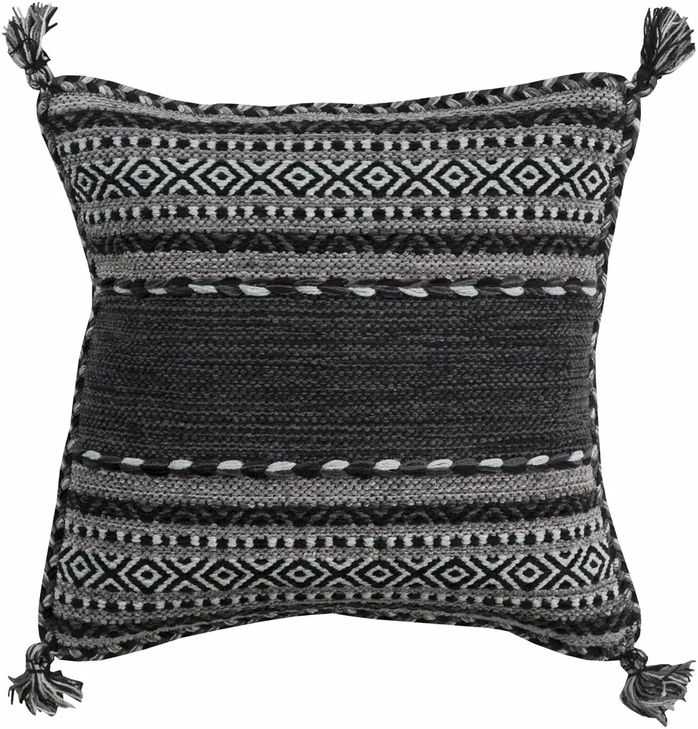 Bensalem Black Geometric Fringe Throw Pillow - 20" X 20" Square Pillow Cover With Polyester Insert