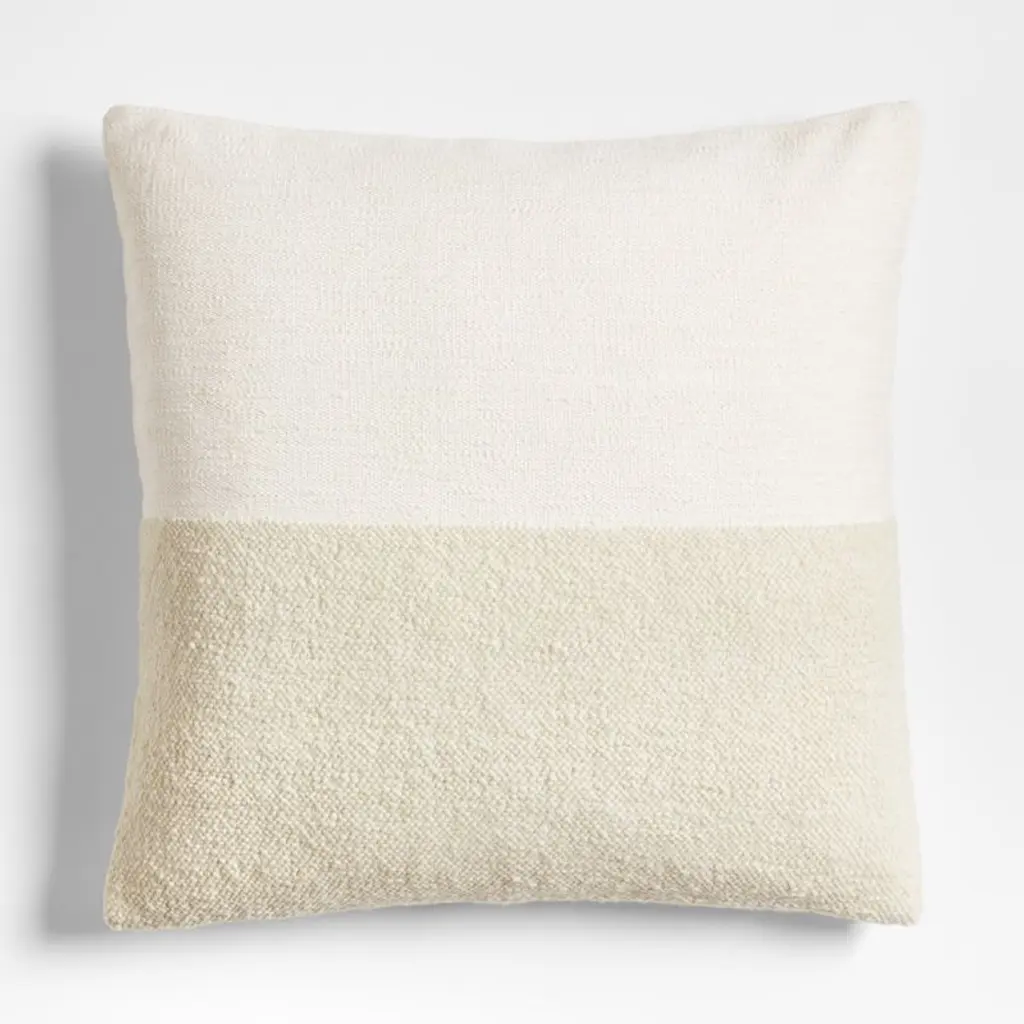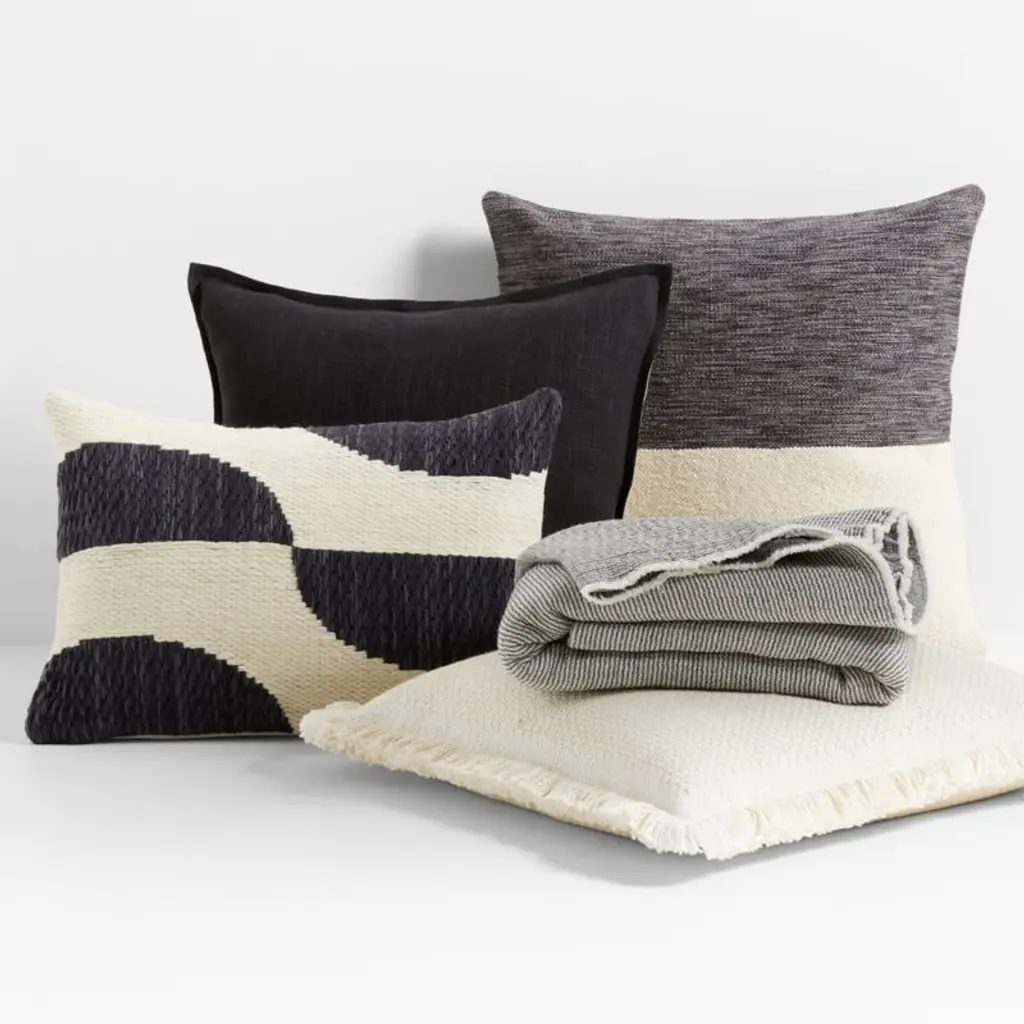 Half chunky, half flat, part ivory, part black. Our Biella throw pillow blocks a two-texture, two-color pattern for a modern look and cozy feel. Made of wool and cotton, the soft pillow features off-white yarn that combines with black on one half to create a heathered appearance. Our ivory-and-black throw pillow includes your choice of a plush feather-down or lofty down-alternative insert.