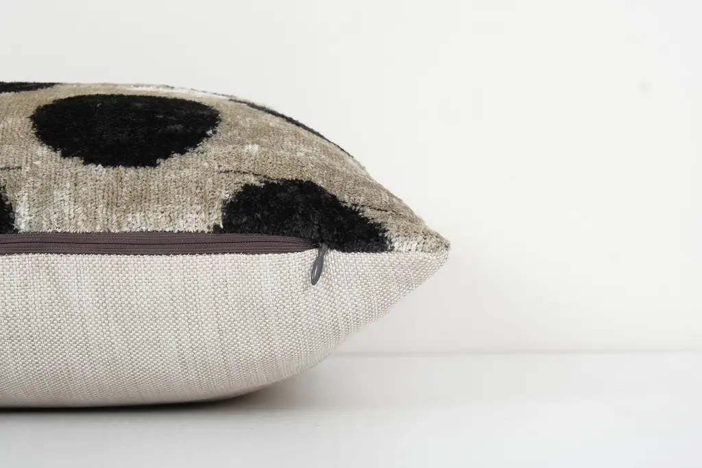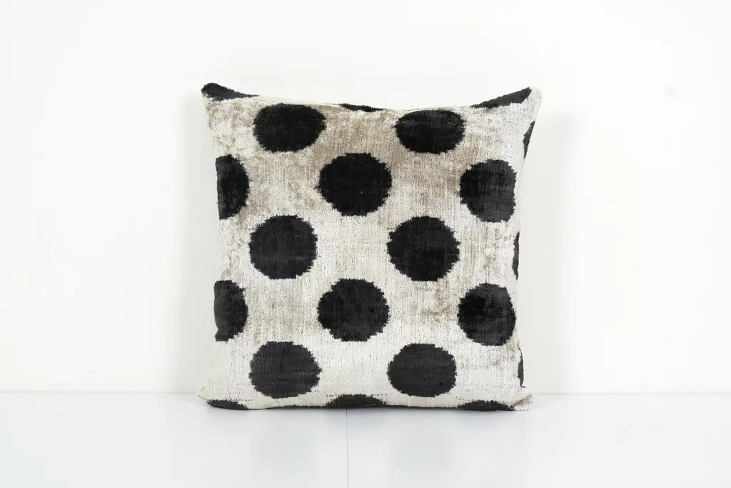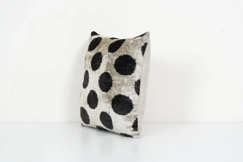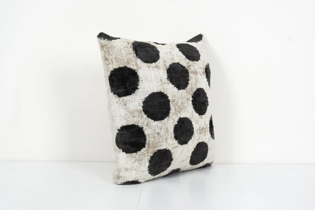 Decorative Throw Velvet Ikat Pillow -Luxurious cushion cover of handloomed ikat fabric -Insert is NOT included -Ikat is an beautiful fabric, every pillow is unique but can also contain small imperfections; the charm of a handmade product. Dimensions: 16" x 16" / 40 x 40 Cm -Handloom 100% silk velvet fabric -Back side is cotton fabric and with hidden zipper. -Handwoven velvet pillow case only, -Hand wash 30 C or dry clean