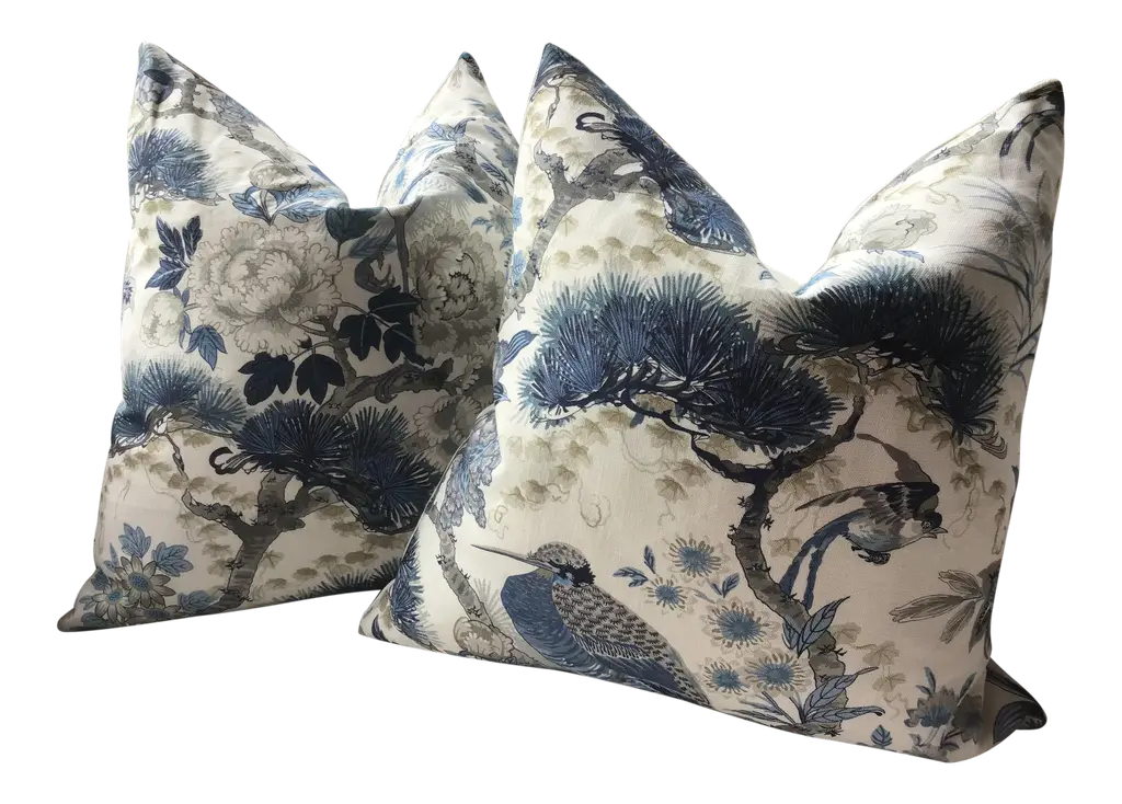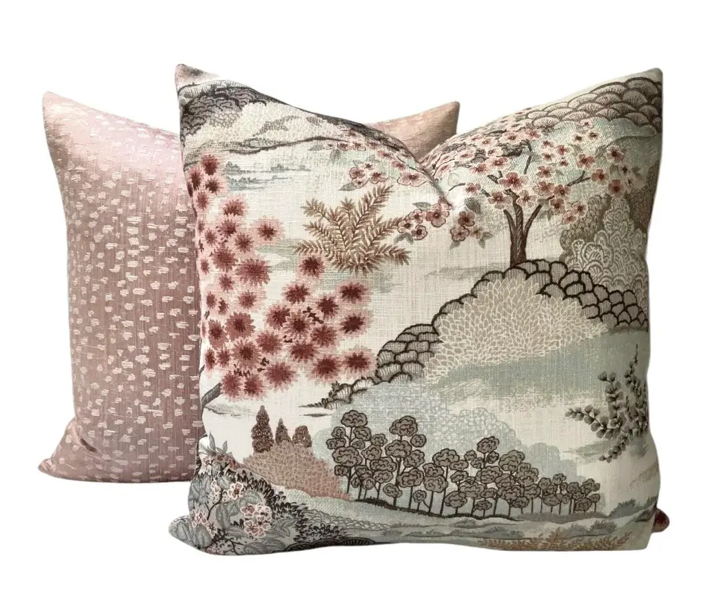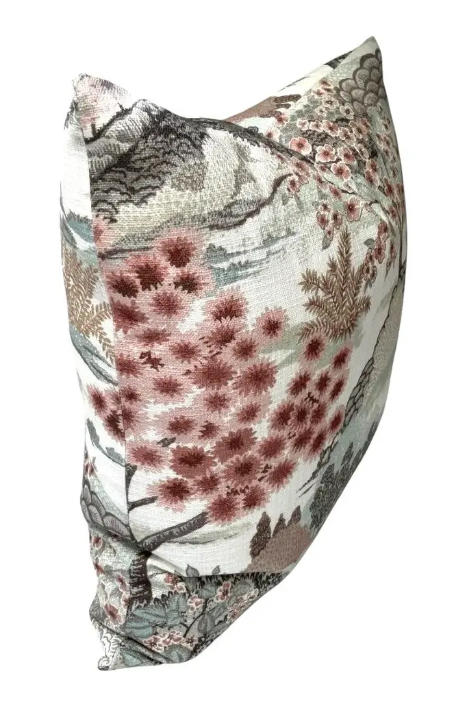 This rose mist pillow cover features a Chinoiserie-inspired design with cherry blossom trees and delicate flowers in a tranquil, Asian-influenced scene. Made from 100% woven cotton, it’s soft yet durable, adding a refined, elegant touch to any space. Same fabric on BOTH sides. ~Features~ - all edges are finished to prevent fraying and seams are double stitched for durability - invisible zipper closure - careful placement of the pattern - dry clean recommended - pillows corners are slightly tapered to prevent pointy doggy ears This sale is for 1(one) pillow cover, does NOT include the pillow insert If you have any questions or special requests please contact me Thank you.