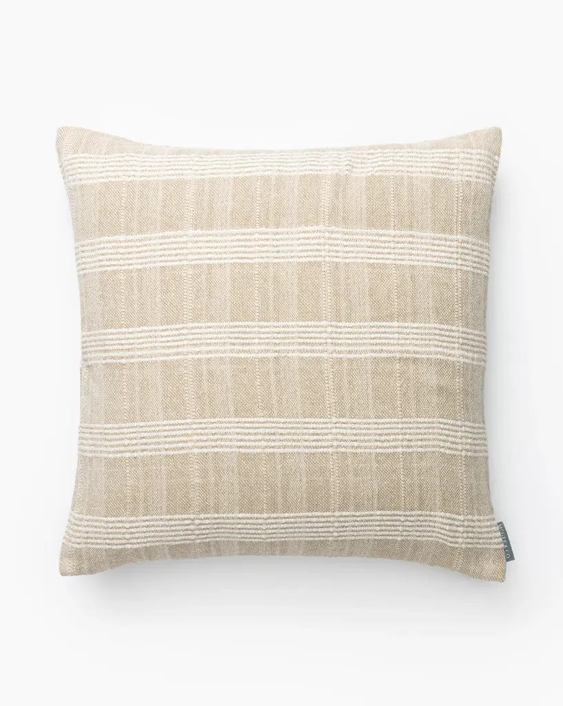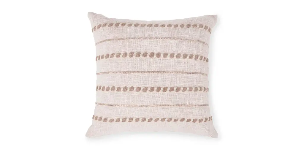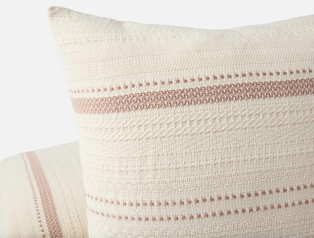 Luxurious texture meets pure, undyed organic cotton with our Bonita Organic Decorative Pillow Cover. Featuring an intricate woven design inspired by the timeless craft of basketry, this pillow cover adds natural comfort to any bed or sofa. Colored stripes stand out against the undyed ground for a touch of timeless elegance.