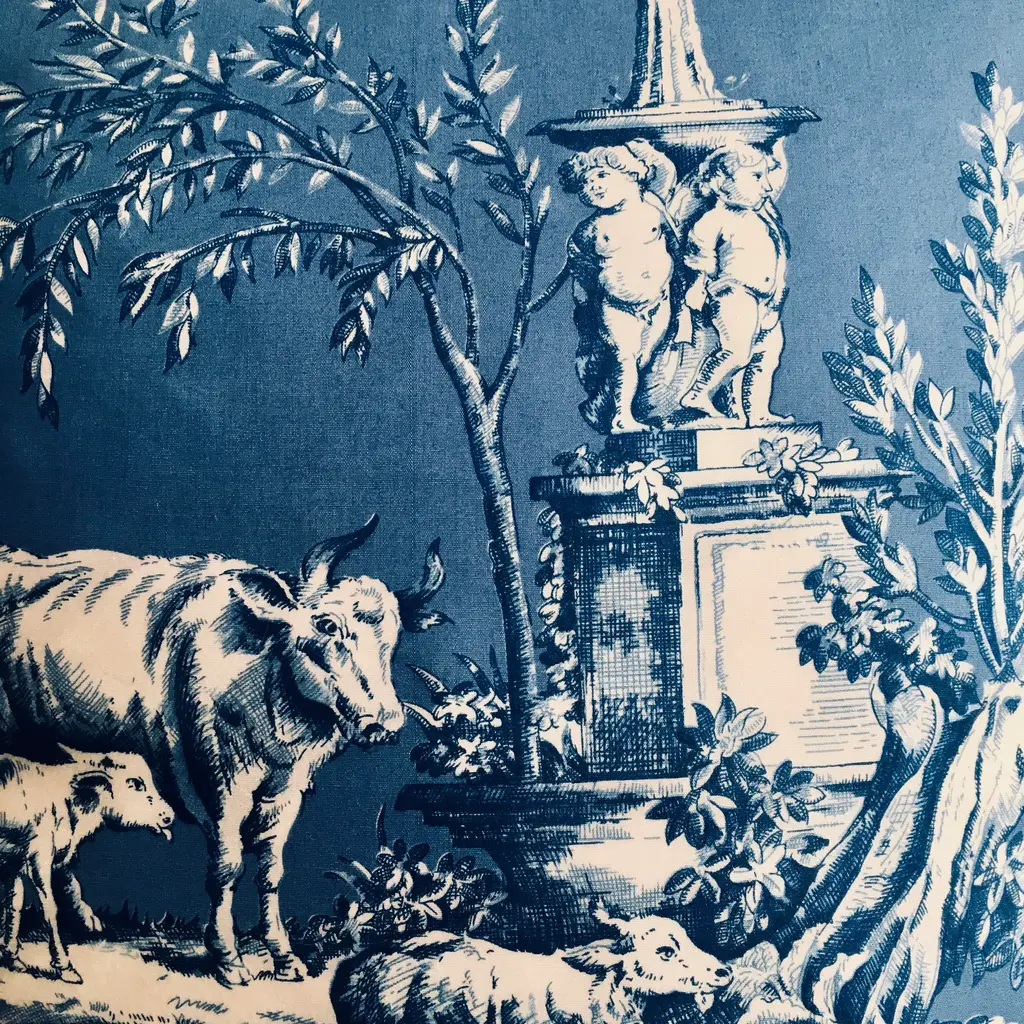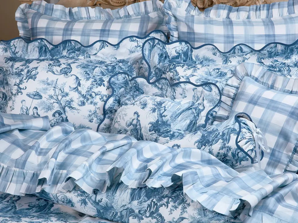 Brunschwig And Fils Blue And White Pastoral Toile Pleated Pillow Cover