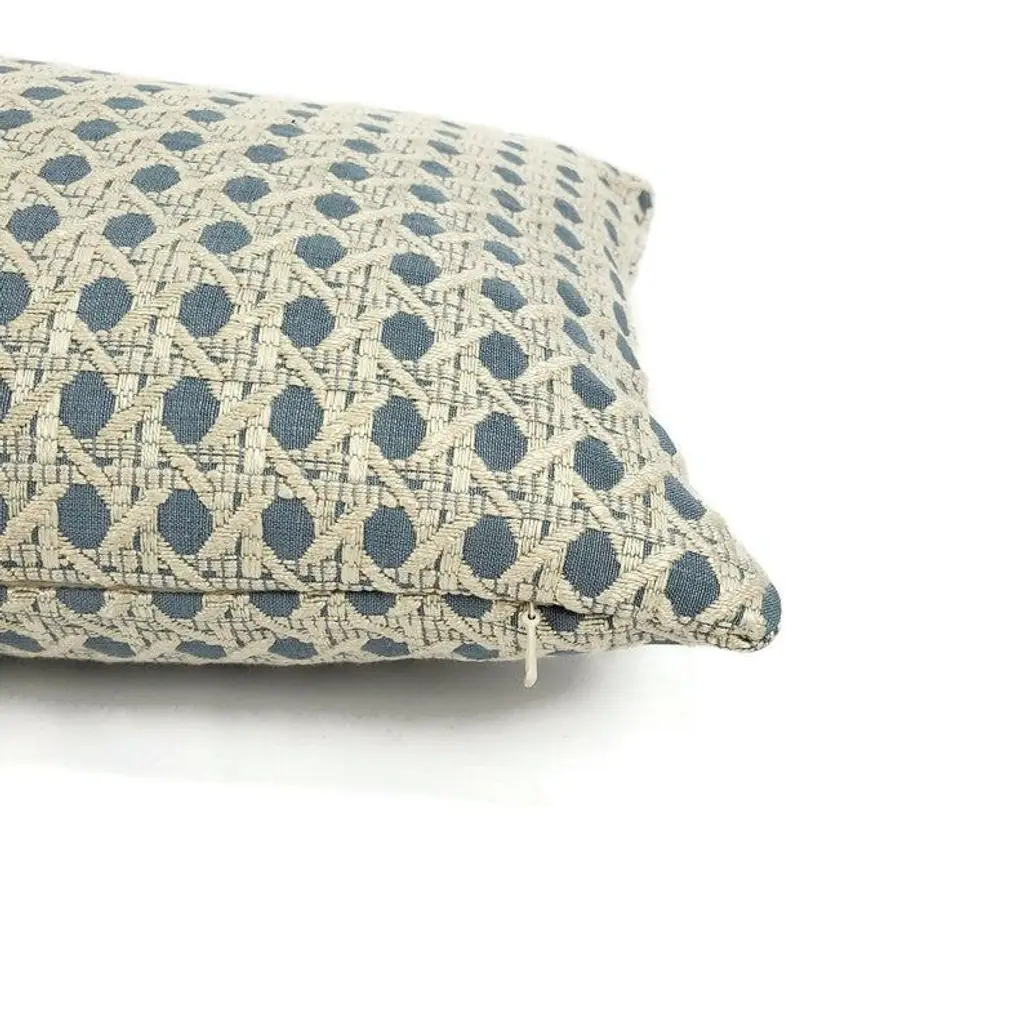 From Brunschwig & Fils is Monterey Woven Texture in the color Baltic pillow cover. This pillow features a blue base with a white woven wicker pattern. Bring this beautiful designer piece into your designs. This pillow is made with an invisible zipper and surged edges. Front/Back: Monterey Woven Texture in Baltic Size: 12" x 20" Cleaning method: Dry Clean only Note: This listing is for ONE pillow cover only. Pillow insert NOT included. Recommended pillow insert size is about 1 inch larger than the cover selected.
