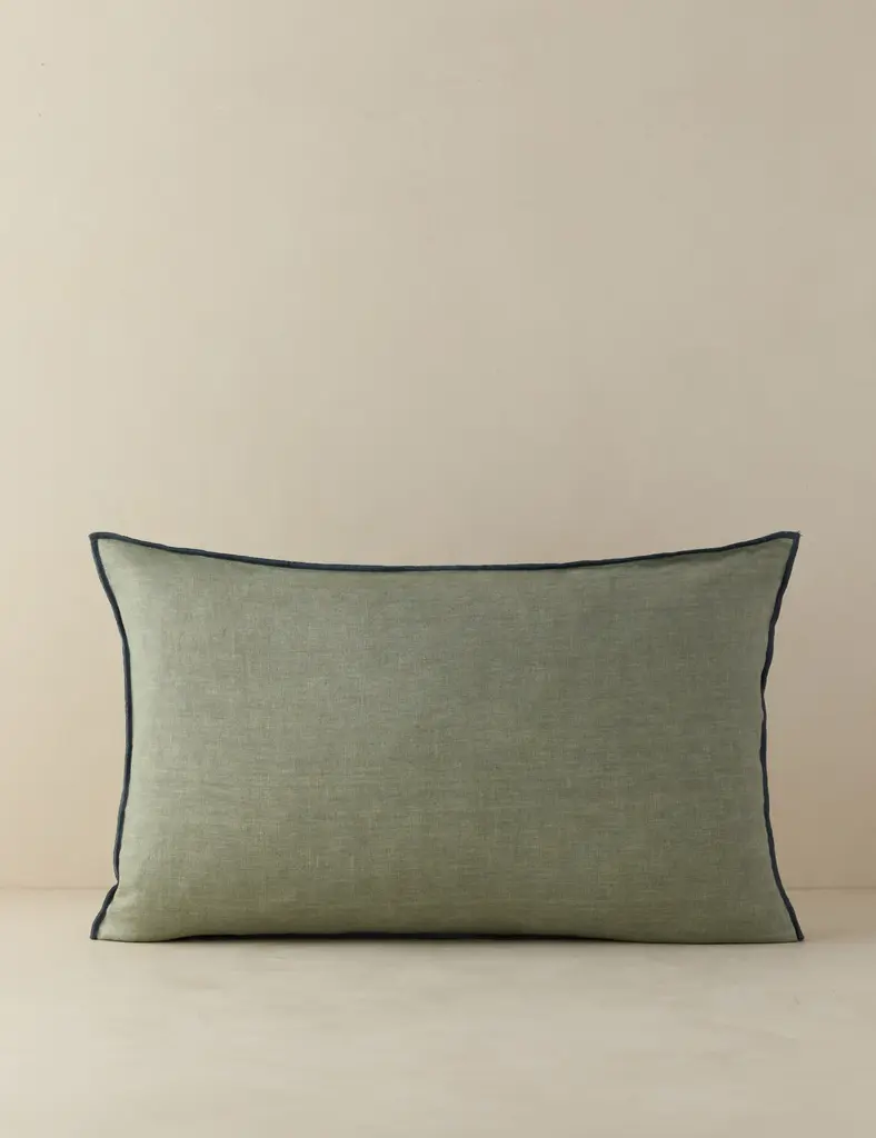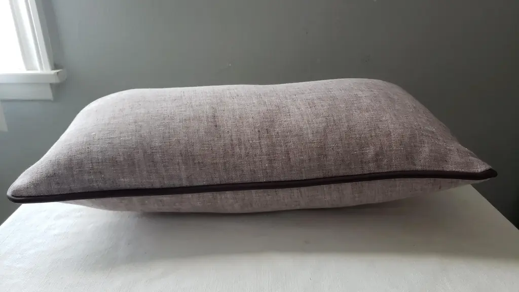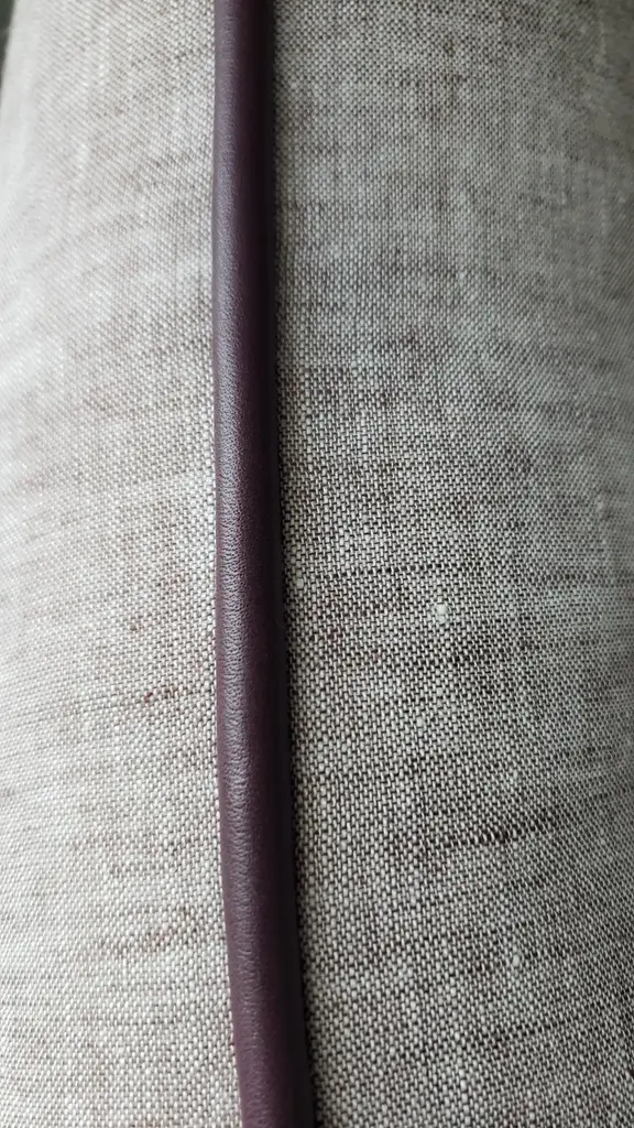 Persico mache fabric on both sides. Size: 20 " W x 10" Ht With plum leather welt. Hidden zipper. C & C white/coffee Fabric information: COMPOSITION: 100% Linen RECOMMENDED USE: Linens , Sheers WEIGHT: 116 grm2/ 3,4 Oz/SqYd WIDTH: 300 cm/ 118.1 inch MARTINDALE: 6000 WARP SHRINKAGE: 3%