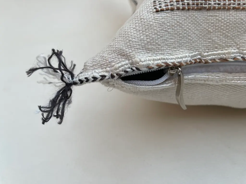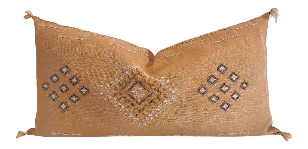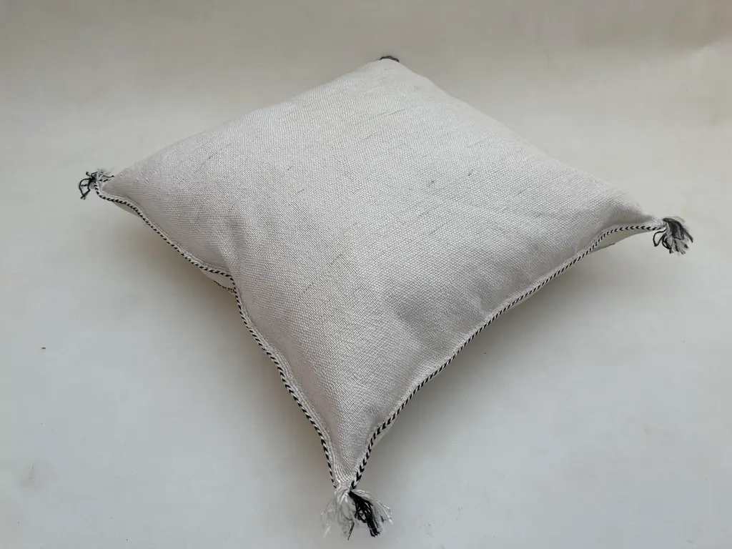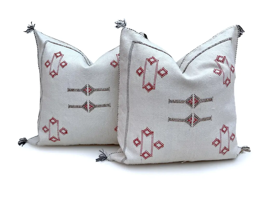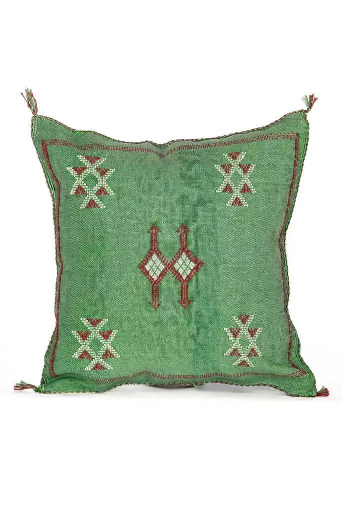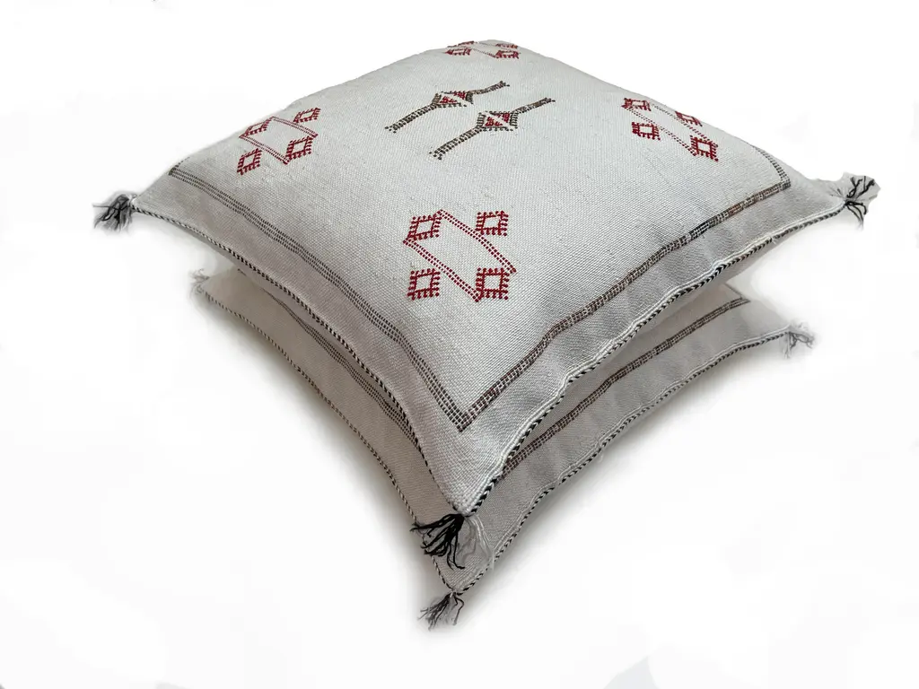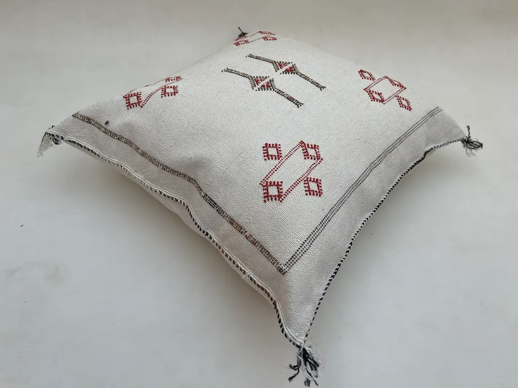 The Moroccan Cactus pillow is a masterpiece handcrafted by local Berber artisans. This carefully decorated pillow is a unique piece of art that should be in every home. - Sabra pillow is 100% handmade. - 100% handmade and handwoven. No chemicals were used in the weaving process. - This pillow is Moroccan made, handcrafted from Aloe Vera silk, commonly known as vegetable silk, Sabra silk. - 100% handmade and handwoven. Mixed inscriptions at the front. - Zipper on one side. Washing Instructions: Dry Clean Only, Avoid Contact With Water. Features and Dimensions: * Approx Size: 20in x 20in / 50cm x 50cm (+/- 2 inch due to the handmade nature of the item). Origin: Berber handmade in Morocco. Condition: in excellent condition! Does not include the filler, the product is empty. The image may vary depending on the display and lighting. Natural versus dim light ............ ..