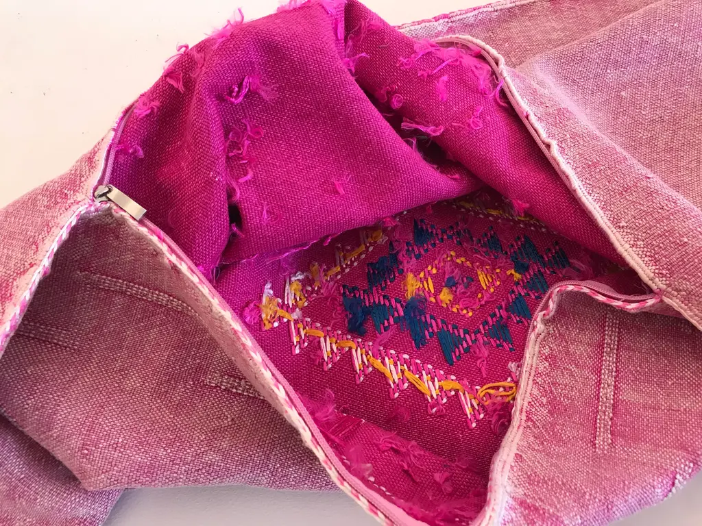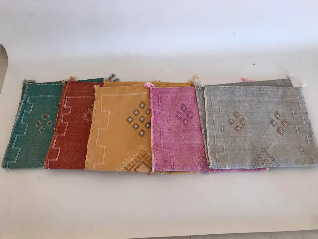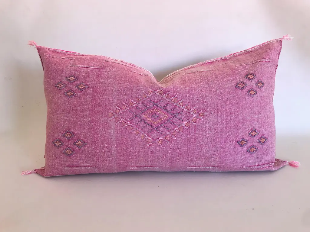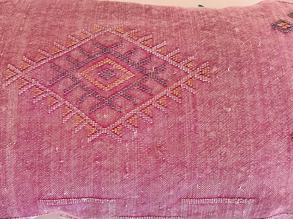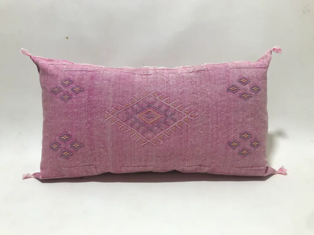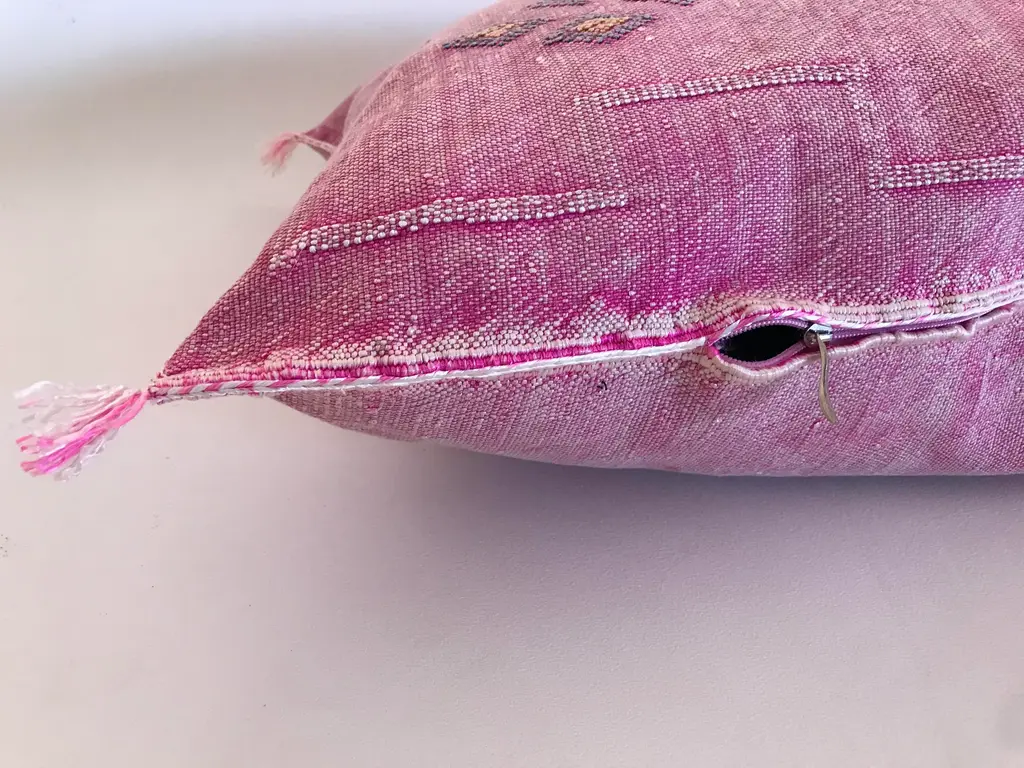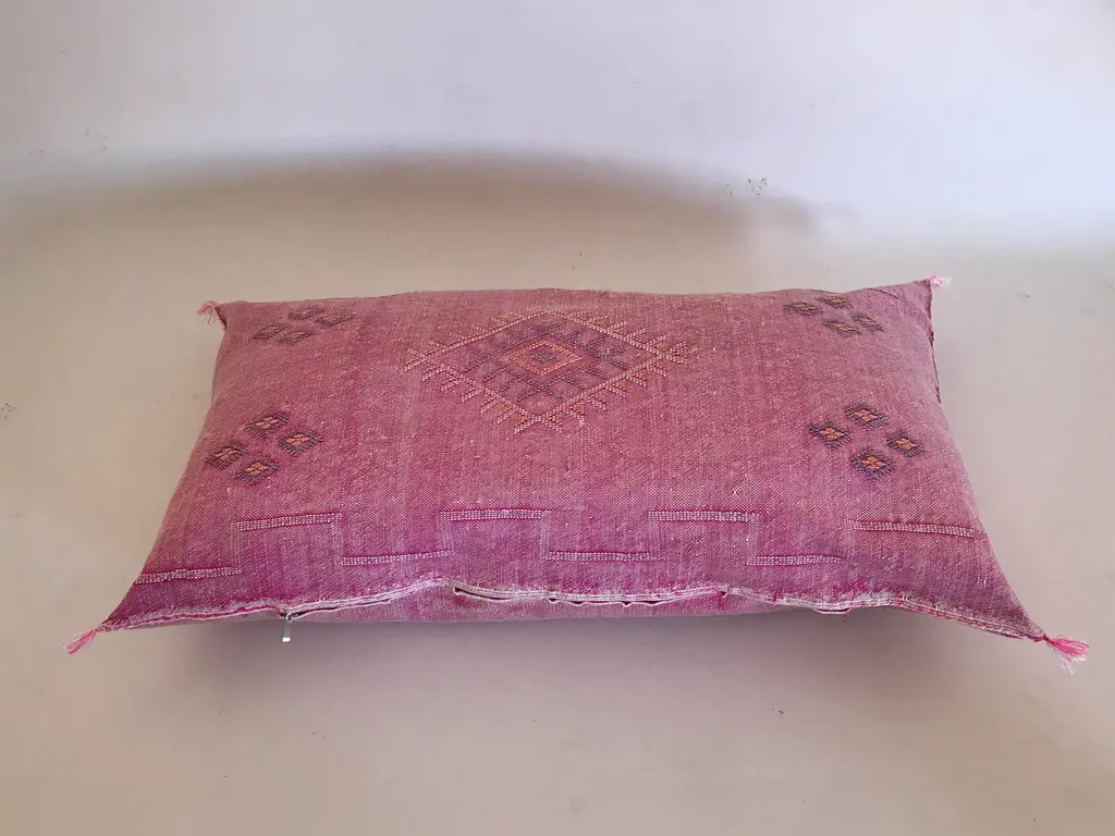 our Handwoven cactus silk pillow cover aka moroccan sabra pillows are refashioned from a cactus silk rug , the cactus silk is a natural vegetable fiber made out of cactus. Each sabra pillow is one of a kind item, create your boho decoration with a unique touch of vintage moroccan pillows and add a little piece of Morocco into your interior Our sabra cactus silk cushion are sent as cover without insert. Size : approximate 39"x20" inches 99x51 cm It is not recommended to wash it with water Dry wash only .