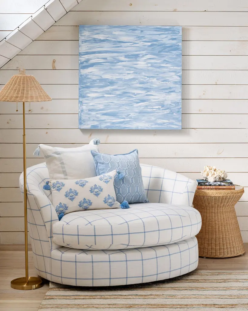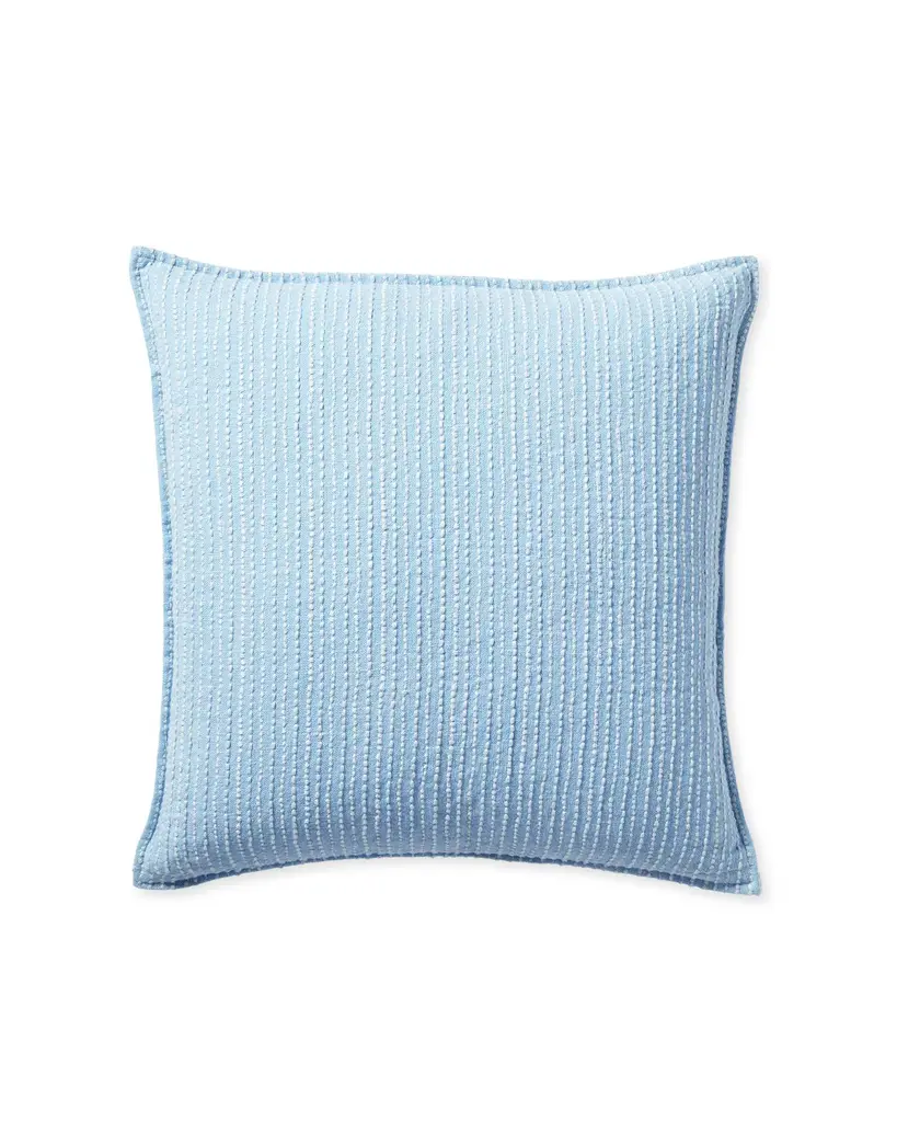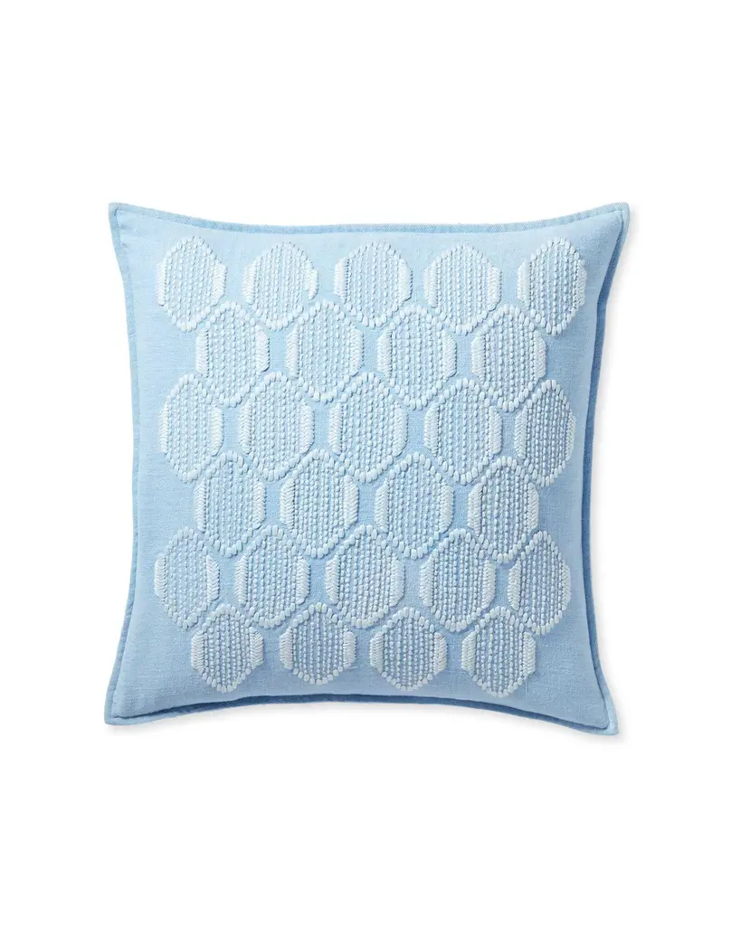 Exquisite embroidery graces a linen base. Spans front to back for abundant texture.