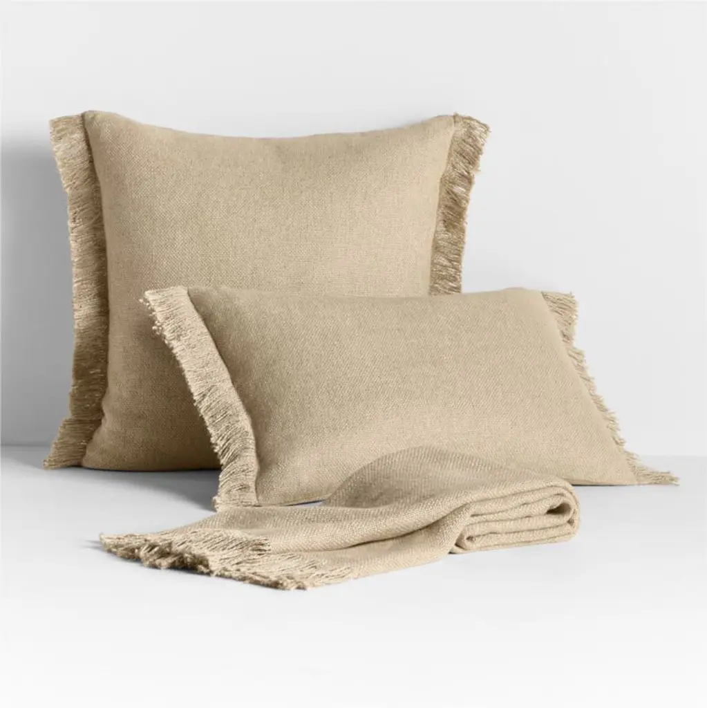 An irresistibly soft and slubby weave gives this throw pillow cover a relaxed look and feel that you'll want to snuggle up with every day. The inclusion of silky viscose adds a sophisticated sheen to the organic beauty of sustainably sourced linen fibers. Yarn-dyed a warm taupe hue inspired by flax, the fringed cover looks chic and casual tossed on a sofa, armchair or bed-especially paired with the matching throw blanket. Fill our lumbar pillow cover with a plush feather-down or lofty down-alternative insert sold separately.