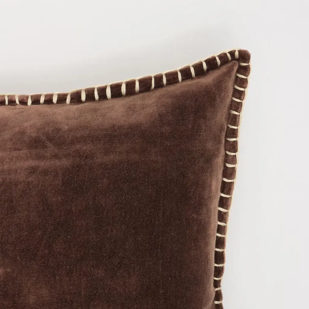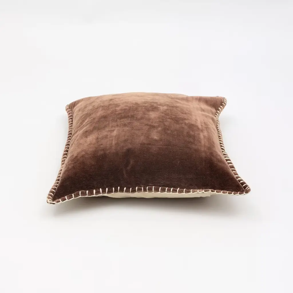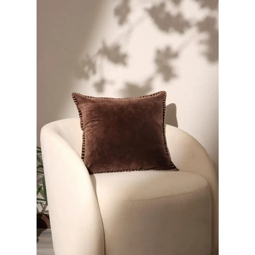 Chery Life Brown Stonewashed Cotton Velvet Throw Pillow With Decorative Handstiched Edges-19x19"