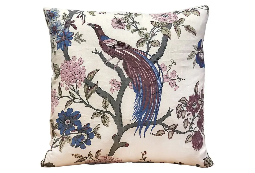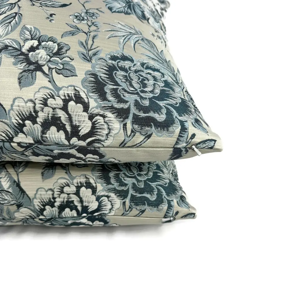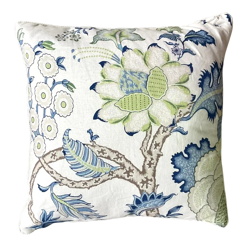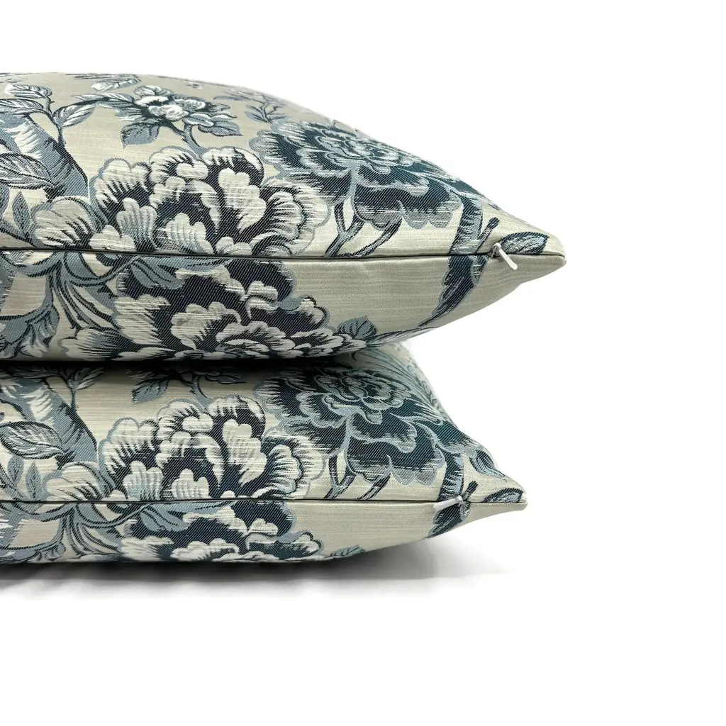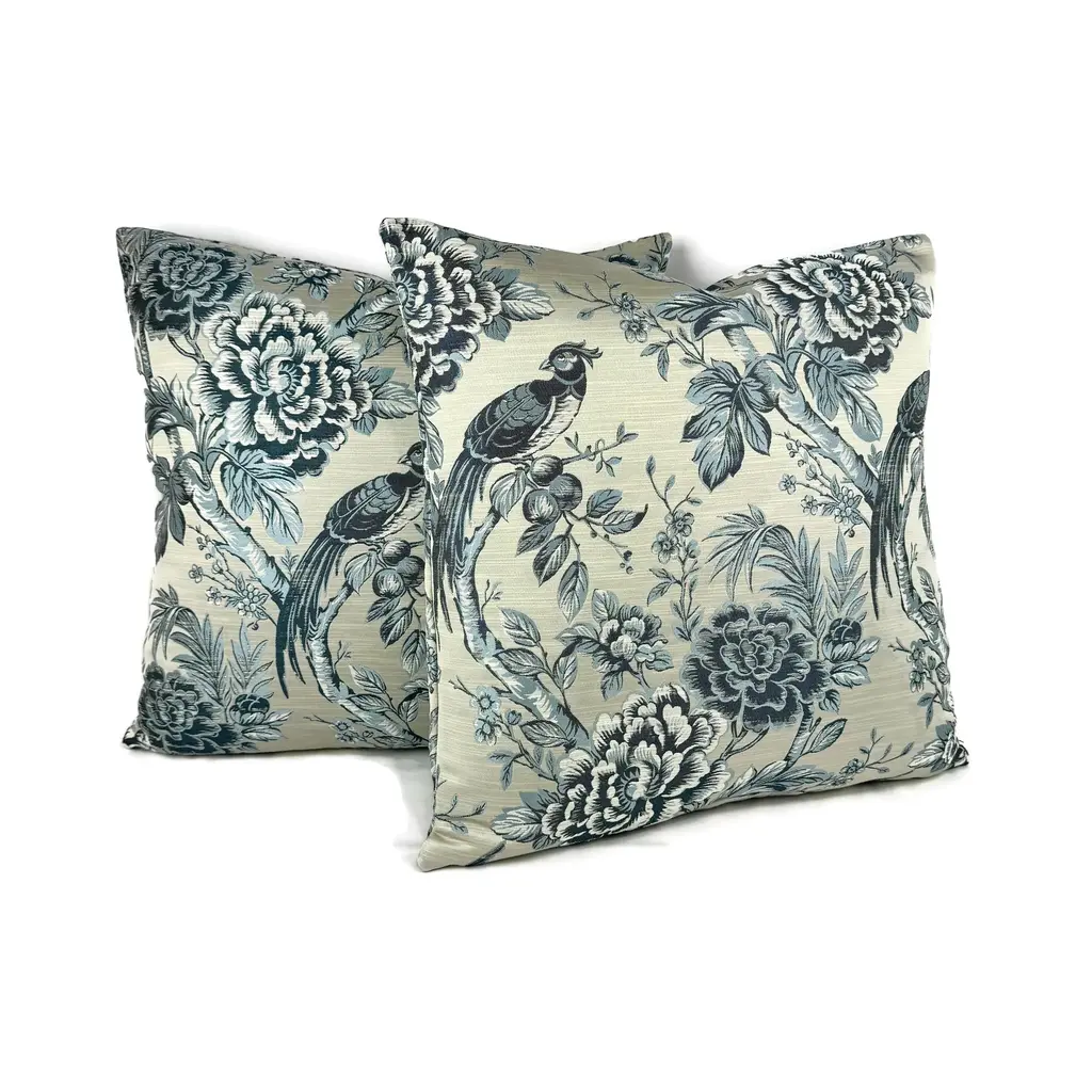 From Clarke & Clarke is Avium in the color Denim pillow cover. This pillow features a silver background with a bird-centered and a botanical scene with blues and dark navy. A Stunning piece that will compliment your designs. This pillow is made with an invisible zipper and surged edges. Front/Back: Vernazza in Indigo Size: 20" x 20" Cleaning method: Dry Clean only Feather insert not included. Please see shop policies before purchase.
