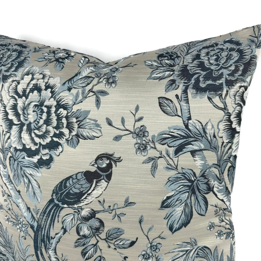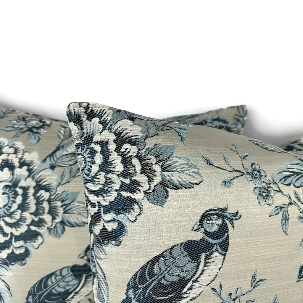 Clarke And Clarke Avium In Denim Pillow Cover Silver And Blue Bird Pattern