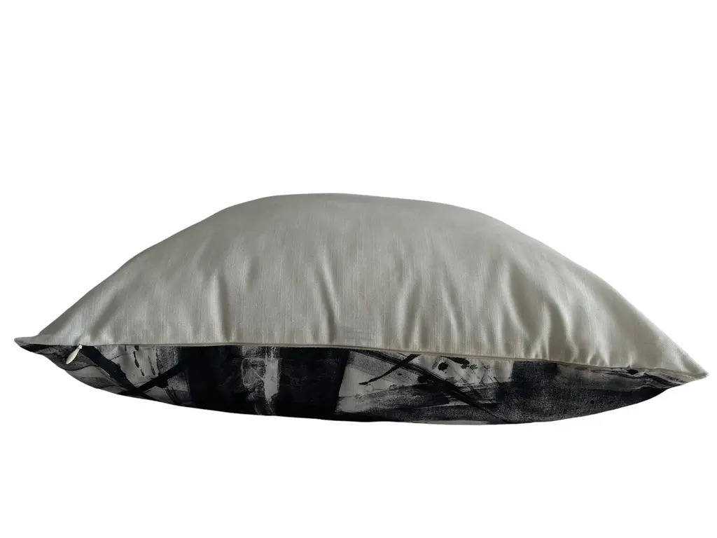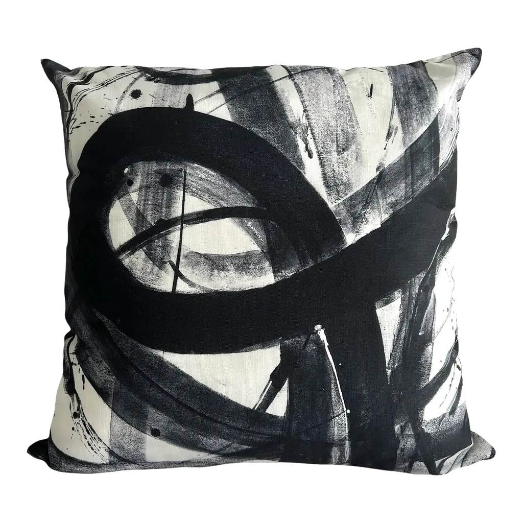 Designer Christi Tasker knows that creative and artistic movement makes the world go round. When designing her own Miami condo (aka. #MyMiamiCondo) art and artistic abstract pillows with various patterns were a fun part of the design. Add this abstract black and multi-shades of gray pillow painting to a sofa, chair, bed, or wherever a pop of color is needed. Measures 18 x 18 Material !00% Polyester Pillow Insert Not Included