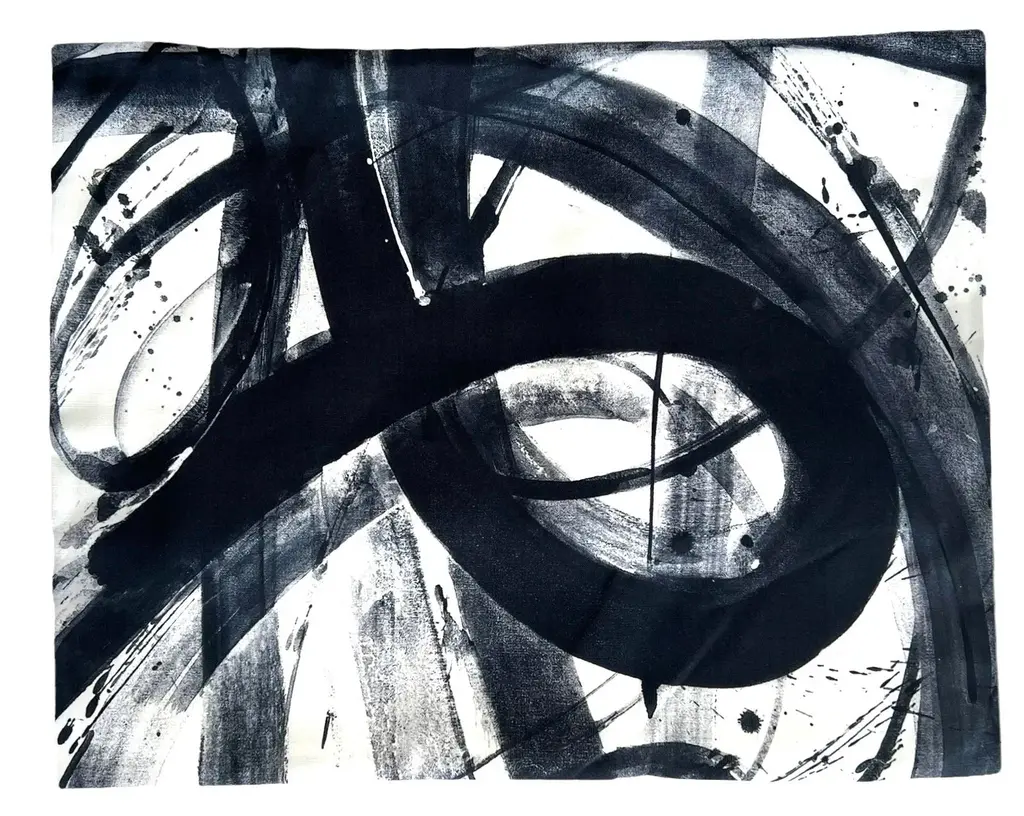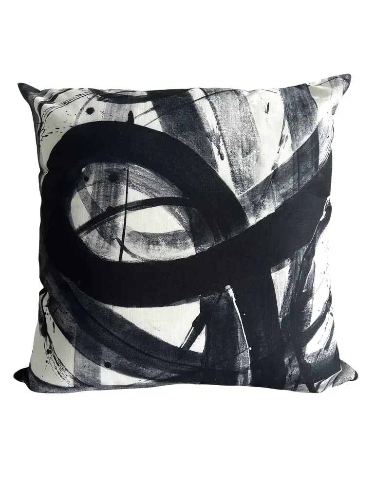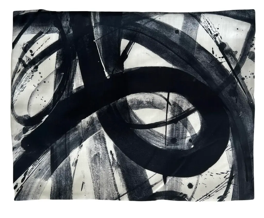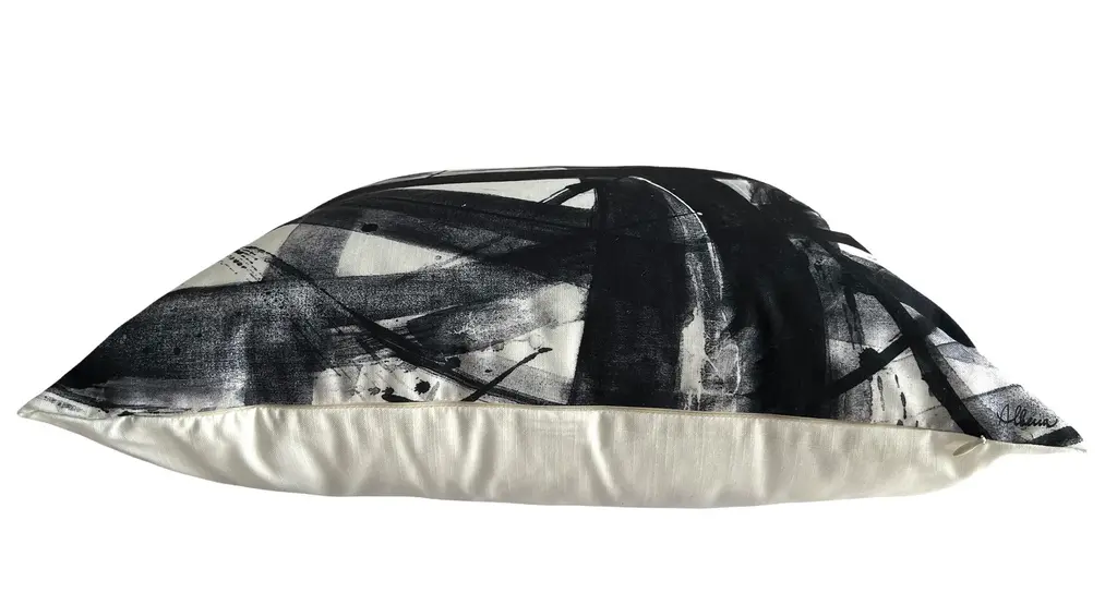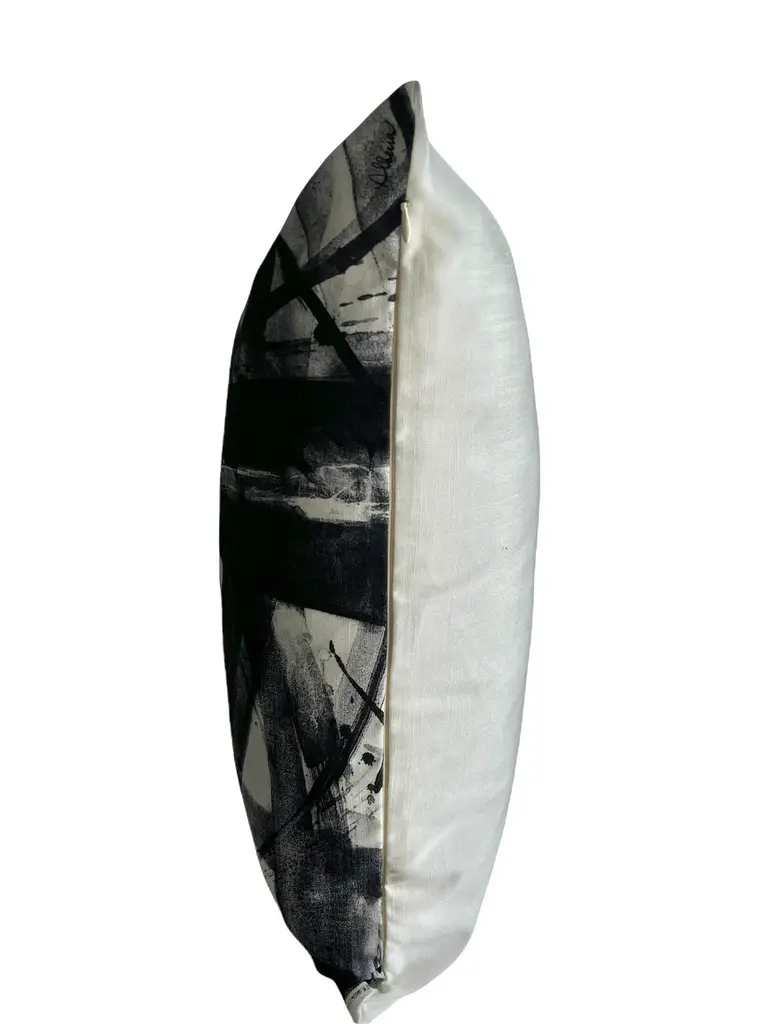 Designer Christi Tasker knows that creative and artistic movement makes the world go round. When designing her own Miami condo (aka. #MyMiamiCondo) art and artistic abstract pillows with various patterns were a fun part of the design. Add this abstract black and multi-shades of gray pillow painting to a sofa, chair, bed, or wherever a pop of color is needed. Measures 24 x 24 Material !00% Polyester Pillow Insert Not Included
