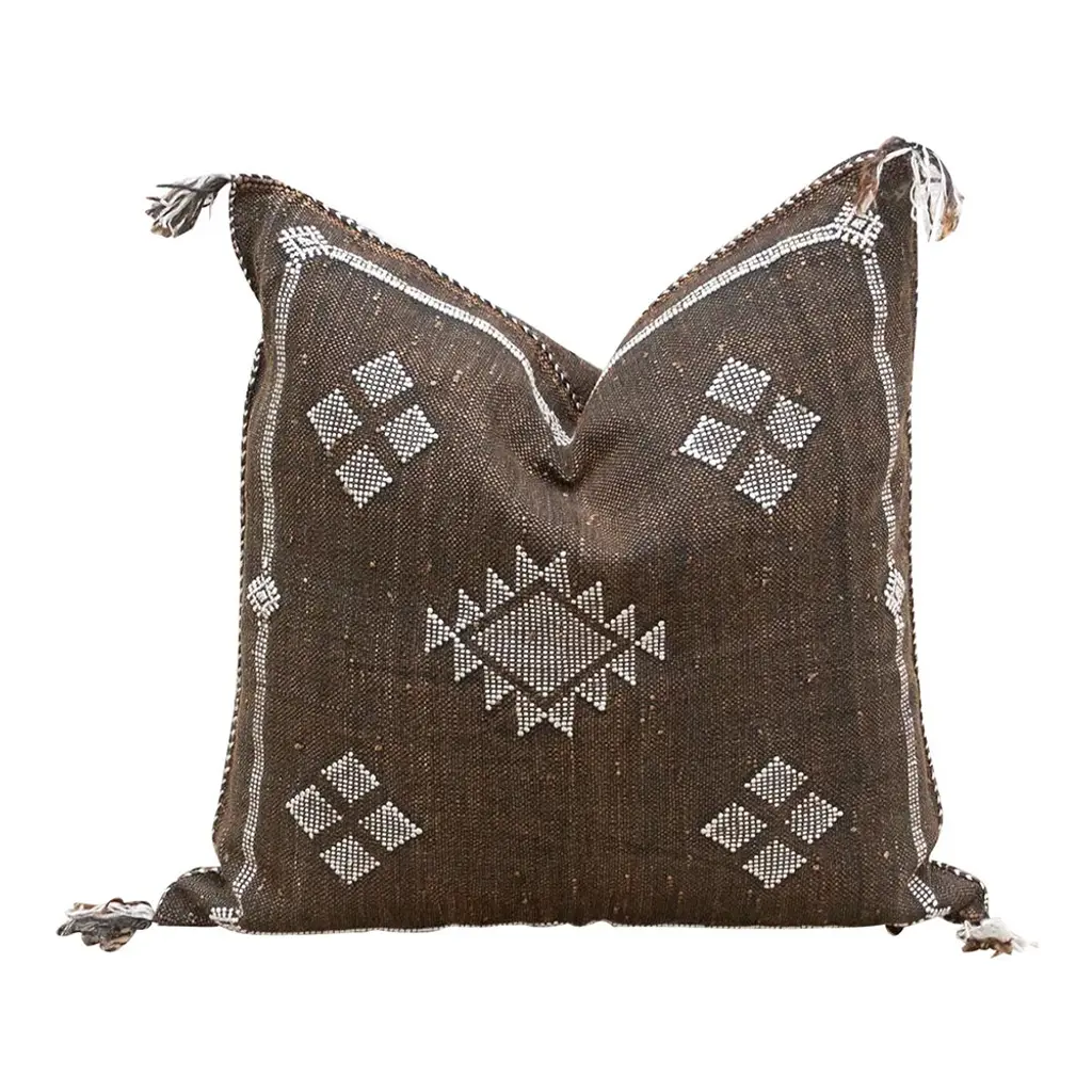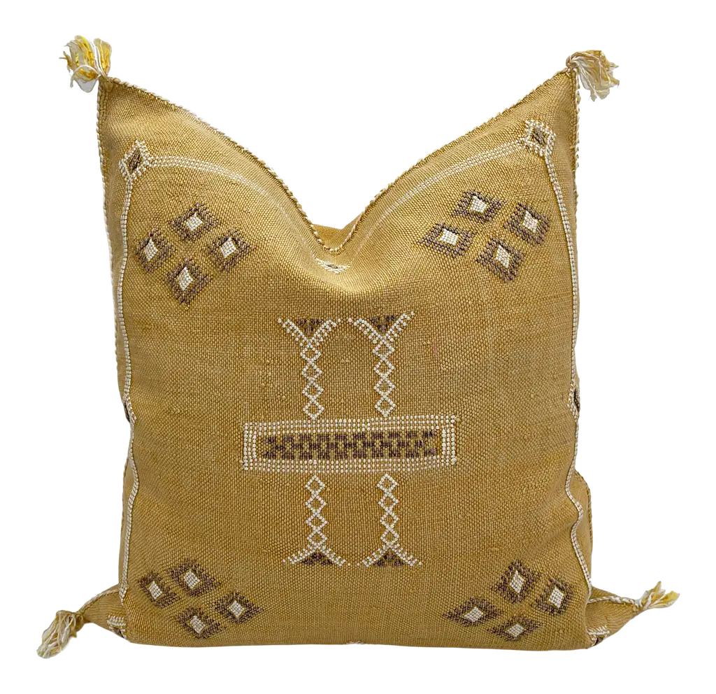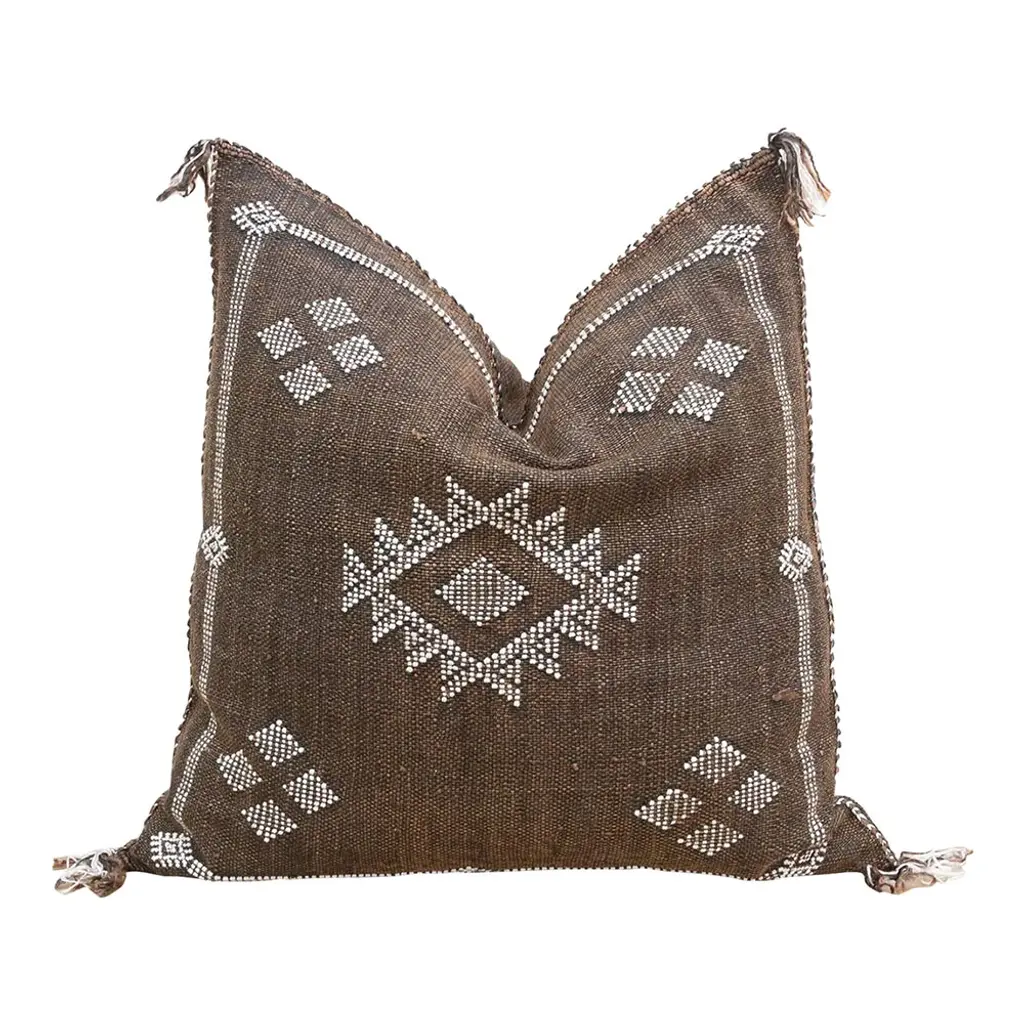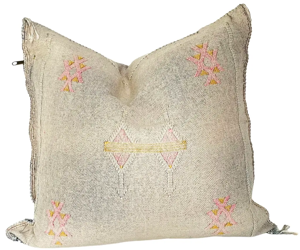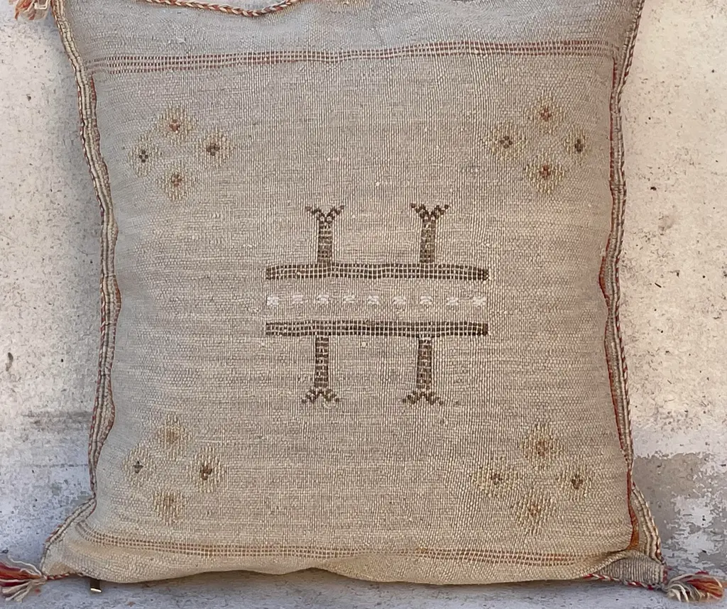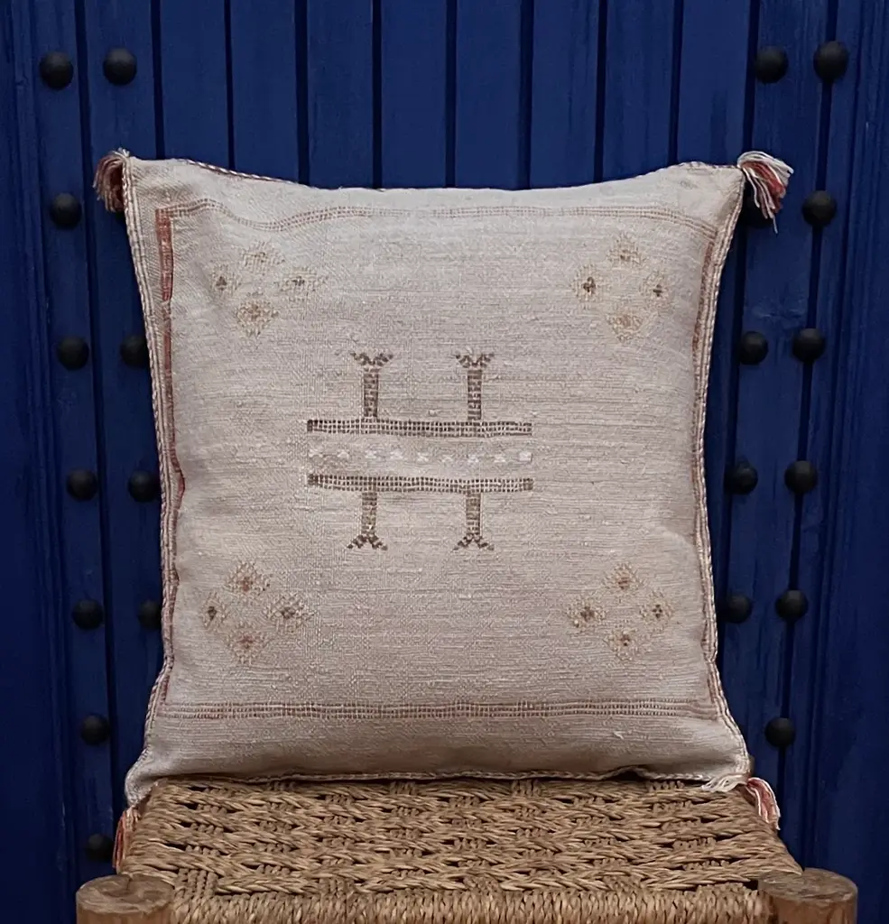 PILLOW DESCRIPTION : This cactus pillow was made purely Moroccan by the hands of traditional craftsmen, skilled Berbers, which bears ancient symbols, which makes it a unique masterpiece in addition to the possibility of using it as home furnishings. - It is completely handmade. - Without any chemicals - It is recommended to clean it Dry cleaning while avoiding contact with water. - Woven by hand from aloe Vera silk Sabra silk or vegetable silk. Features and Dimensions: - Approximate dimensions 20/20 in with a slight streak margin due to the manual component . - The product is without filler . - with or Zipper opening on back. - Some slight differences in colors may be due to the photographic equipment. - Shipping: - Ships with the fastest means available and in the best conditions DHL Express - FedEx. - The product is shipped in 3 to 5 working days. - We provide the customer with the tracking number of the product via the Internet. - We remain under reference to inquire about any information related to this product. The product is a natural artistic masterpiece by owning it that has decorated your home and helped to preserve the environment as well as encourage traditional manufacturers to Continuation.