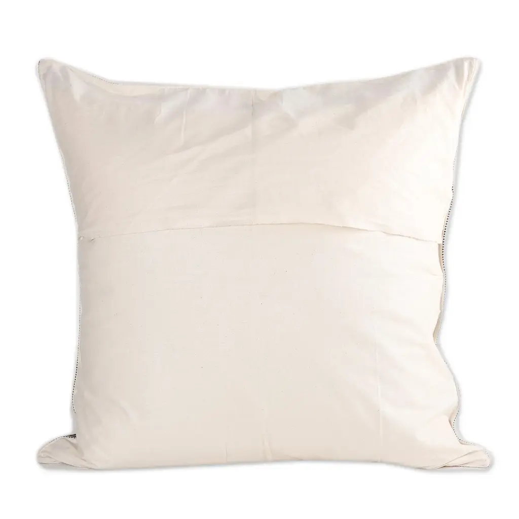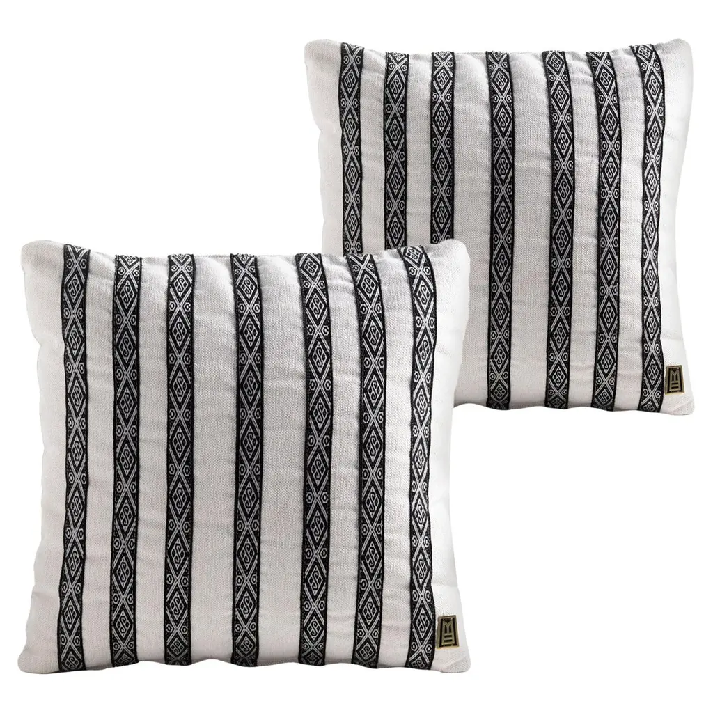 Combining hues of antique white and black, the UMBVS Desert Weavers of India create a lovely pair of cushion covers to add to your home. Working to promote social equality and the preservation of traditional weaving techniques, the artisans hand-weave these cushion covers from cotton to feature stripes and intricate geometric patterns. On the back, each cover features a slit for inserting a cushion.