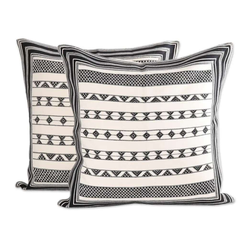 Cotton Cushion Covers With Black Geometric Patterns (Pair)- Geometric Stripes