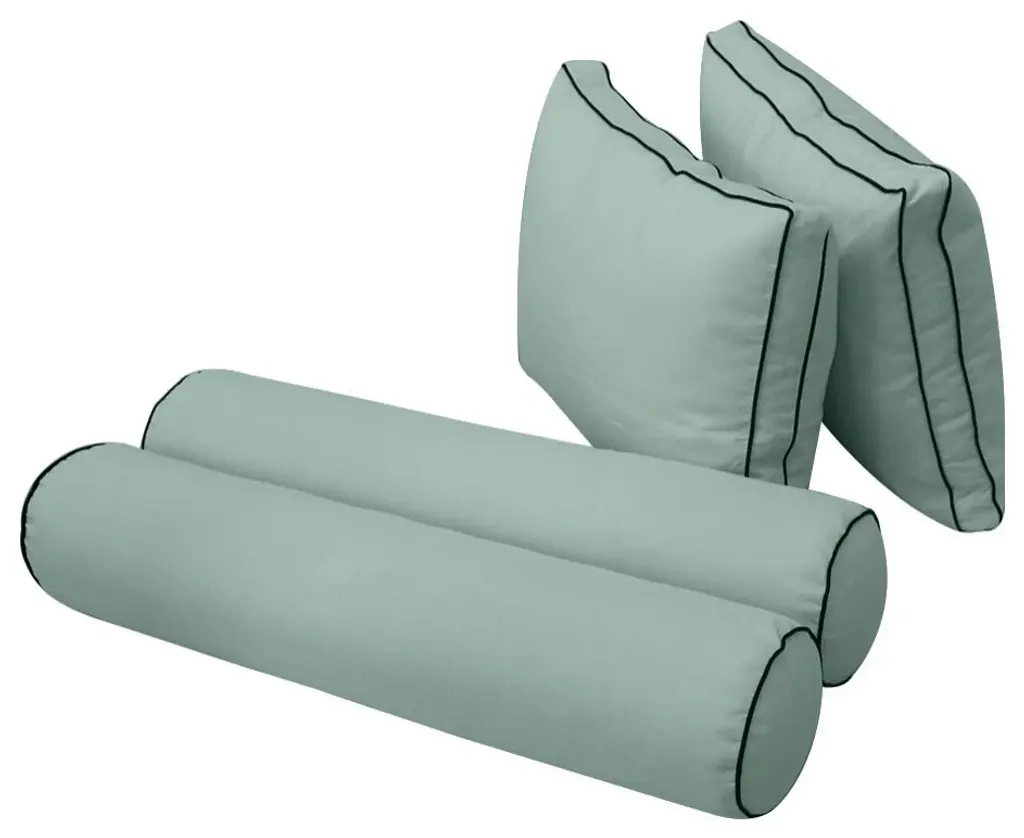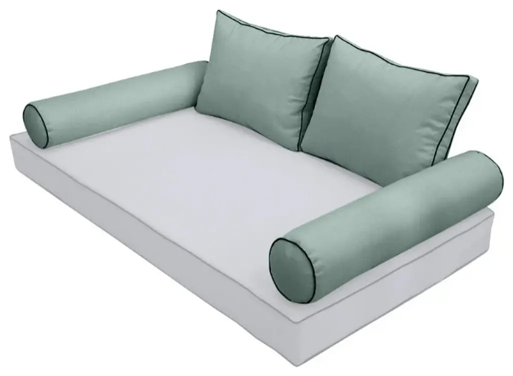 • Style-1 Full Size Contrast Pipe Trim Bolster & Back Pillow Cover Set• • Mattress and Insert Not Included• • 2 x Bolster Pillow Cover Only: 52" x 8"• 2 x Back Pillow Cover Only: 28" x 20" x 5"• Color: AD002• Edge Trim: Pipe Trim ( contrast color )• Fabric: 230 Gram Polyester Upholstery• Hidden Zipper• Water Repellent • Not Water Proof• • Tips: Please cover or store cushion pillow in rainy season• Cleaning: Soap clean and rinse off with water hose. Outdoor durable!• Quantity: 1