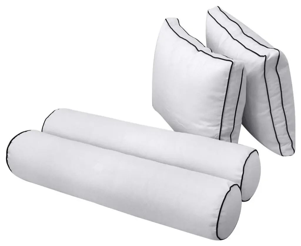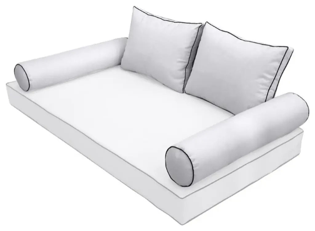 • FINAL SALE: No returns or exchanges • • • • FABRIC SAMPLE IS AVAILABLE, PLEASE CONTACT US • • • • Style-1 Full Size Contrast Pipe Trim Bolster & Back Pillow Cover Set• • Mattress and Insert Not Included• • 2 x Bolster Pillow Cover Only: 52" x 8"• 2 x Back Pillow Cover Only: 28" x 20" x 5"• Color: AD105• THIS COLOR IS NOT WHITE. IT IS LIGHT GREY• Edge Trim: Piped Edge (contrast color)• Fabric: 230 Gram Polyester Upholstery• Hidden Zipper• Water Repellent • Not Water Proof• • Tips: Please cover or store cushion pillow in rainy season• Cleaning: Soap clean and rinse off with water hose. Outdoor durable!• Quantity: 1• FINAL SALE: No returns or exchanges