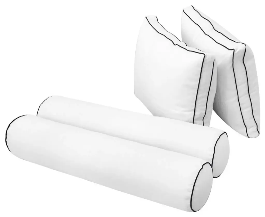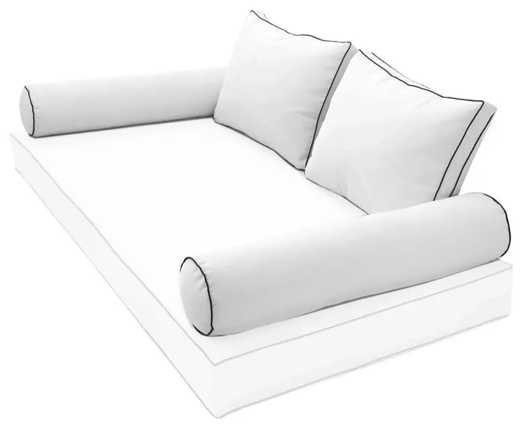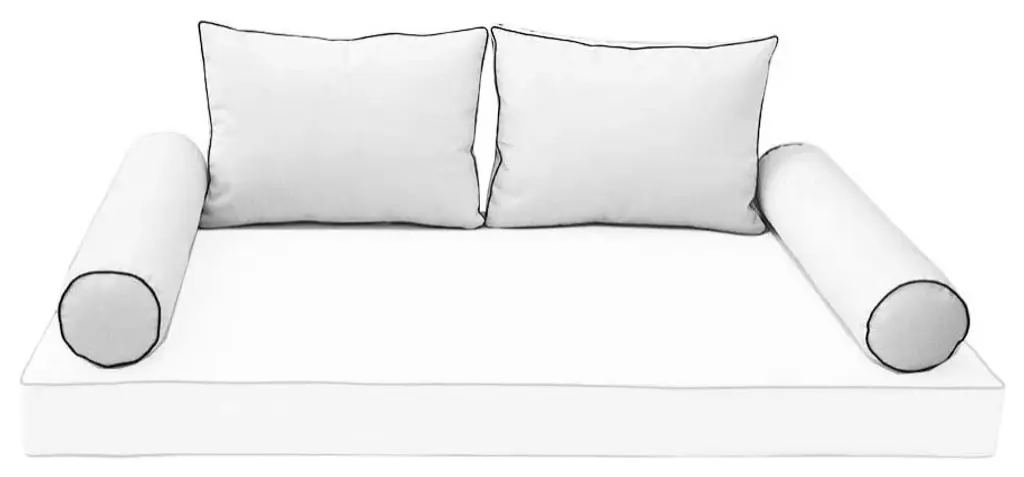• Style-1 Full Size Contrast Pipe Trim Bolster & Back Pillow Cover Set• • Mattress and Insert Not Included• • 2 x Bolster Pillow Cover Only: 52" x 8"• 2 x Back Pillow Cover Only: 28" x 20" x 5"• Color: AD106• Edge Trim: Pipe Trim ( contrast color )• Fabric: 230 Gram Polyester Upholstery• Hidden Zipper• Water Repellent • Not Water Proof• • Tips: Please cover or store cushion pillow in rainy season• Cleaning: Soap clean and rinse off with water hose. Outdoor durable!• Quantity: 1