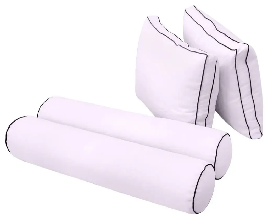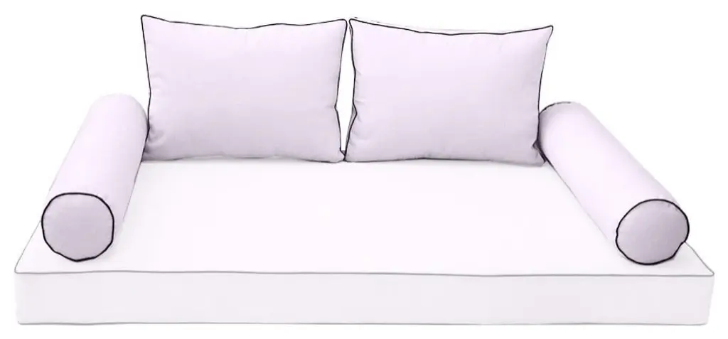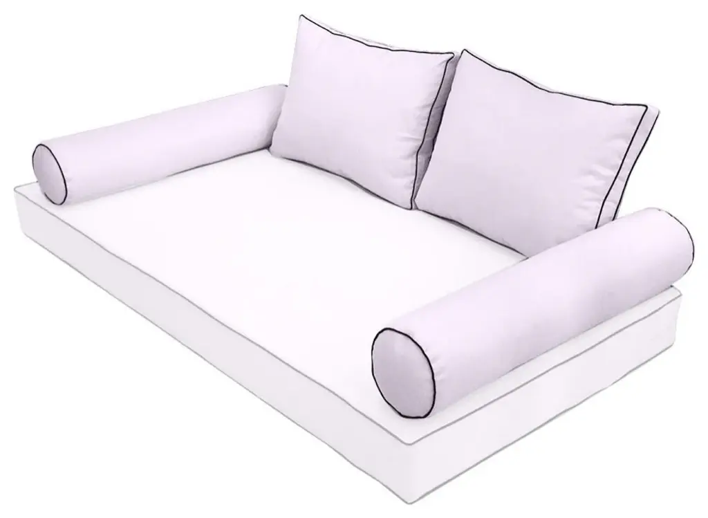 • Style-1 Full Size Contrast Pipe Trim Bolster & Back Pillow Cover Set• • Mattress and Insert Not Included• • 2 x Bolster Pillow Cover Only: 52" x 8"• 2 x Back Pillow Cover Only: 28" x 20" x 5"• Color: AD107• Edge Trim: Pipe Trim ( contrast color )• Fabric: 230 Gram Polyester Upholstery• Hidden Zipper• Water Repellent • Not Water Proof• • Tips: Please cover or store cushion pillow in rainy season• Cleaning: Soap clean and rinse off with water hose. Outdoor durable!• Quantity: 1