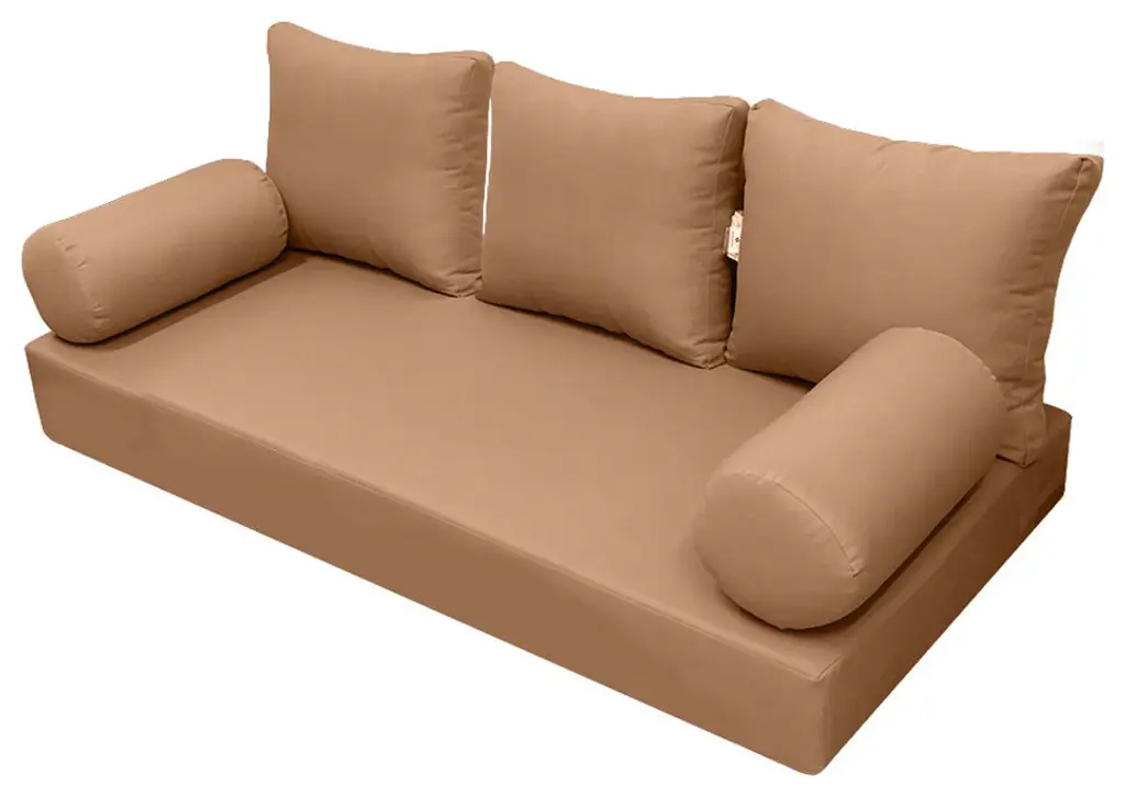 • Style-3 Full Size 6 PC Knife Edge Mattress Bolster Back Cover Only• • Mattress and Insert Not Included• • Fully Encase Cover with Hidden Zipper• 1 x Full Fitted Sheet Cover Only: 75"x 54" x 6"• 2 x Bolster Pillow Cover Only: 42" x 8"• 3 x Back Pillow Cover Only: 24.5" x 20" x 5"• Color: AD104• Edge Trim: Knife Edge• Fabric: 230 Gram Polyester Upholstery• Hidden Zipper• Water Repellent • Not Water Proof• • Tips: Please cover or store cushion pillow in rainy season• Cleaning: Soap clean and rinse off with water hose. Outdoor durable!• Quantity: 1