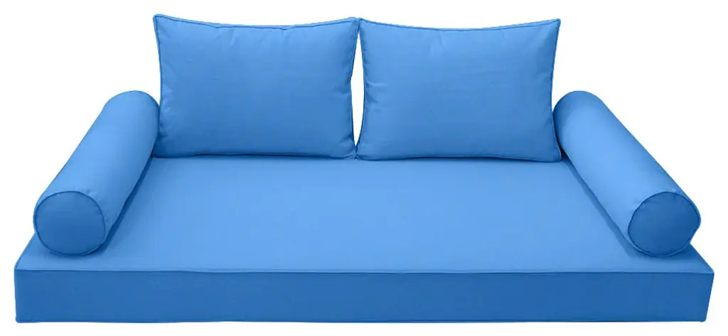 • Style-1 Queen Size 5 PC Pipe Trim Mattress Bolster Back Cover Only• • Mattress and Insert Not Included• • Fully Encase Cover with Hidden Zipper• 1 x Queen Fitted Sheet Cover Only: 80"x 60" x 6"• 2 x Bolster Pillow Cover Only: 58" x 8"• 2 x Back Pillow Cover Only: 30.5" x 20" x 5"• Color: AD102• Edge Trim: PipedEdge (same color)• Fabric: 230 Gram Polyester Upholstery• Hidden Zipper• Water Repellent • Not Water Proof• • Tips: Please cover or store cushion pillow in rainy season• Cleaning: Soap clean and rinse off with water hose. Outdoor durable!• Quantity: 1