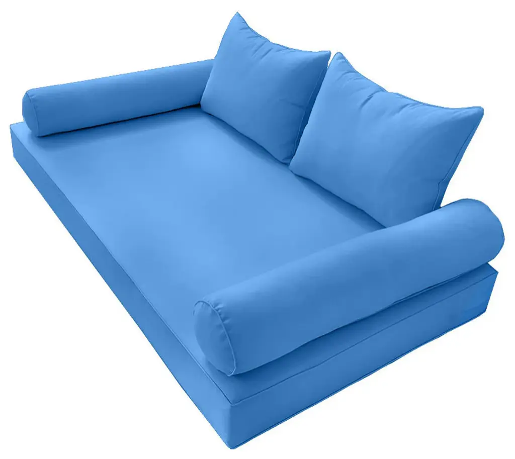 • Style-4 Queen Size 5 PC Pipe Trim Mattress Bolster Back Cover Only• • Mattress and Insert Not Included• • Fully Encase Cover with Hidden Zipper• 1 x Queen Fitted Sheet Cover Only: 80"x 60" x 6"• 2 x Bolster Pillow Cover Only: 58" x 8"• 2 x Back Pillow Cover Only: 30.5" x 20" x 5"• Color: AD102• Edge Trim: Piped Edge (same color)• Fabric: 230 Gram Polyester Upholstery• Hidden Zipper• Water Repellent • Not Water Proof• • Tips: Please cover or store cushion pillow in rainy season• Cleaning: Soap clean and rinse off with water hose. Outdoor durable!• Quantity: 1