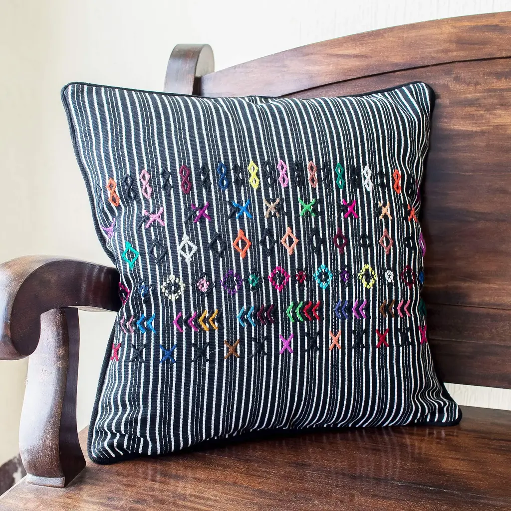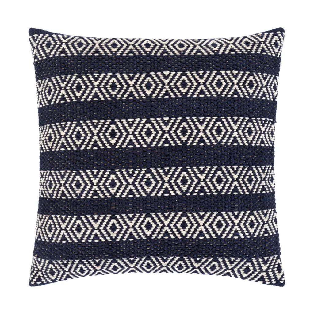 Cross-Stitch Linen Navy Decorative Pillow Cover