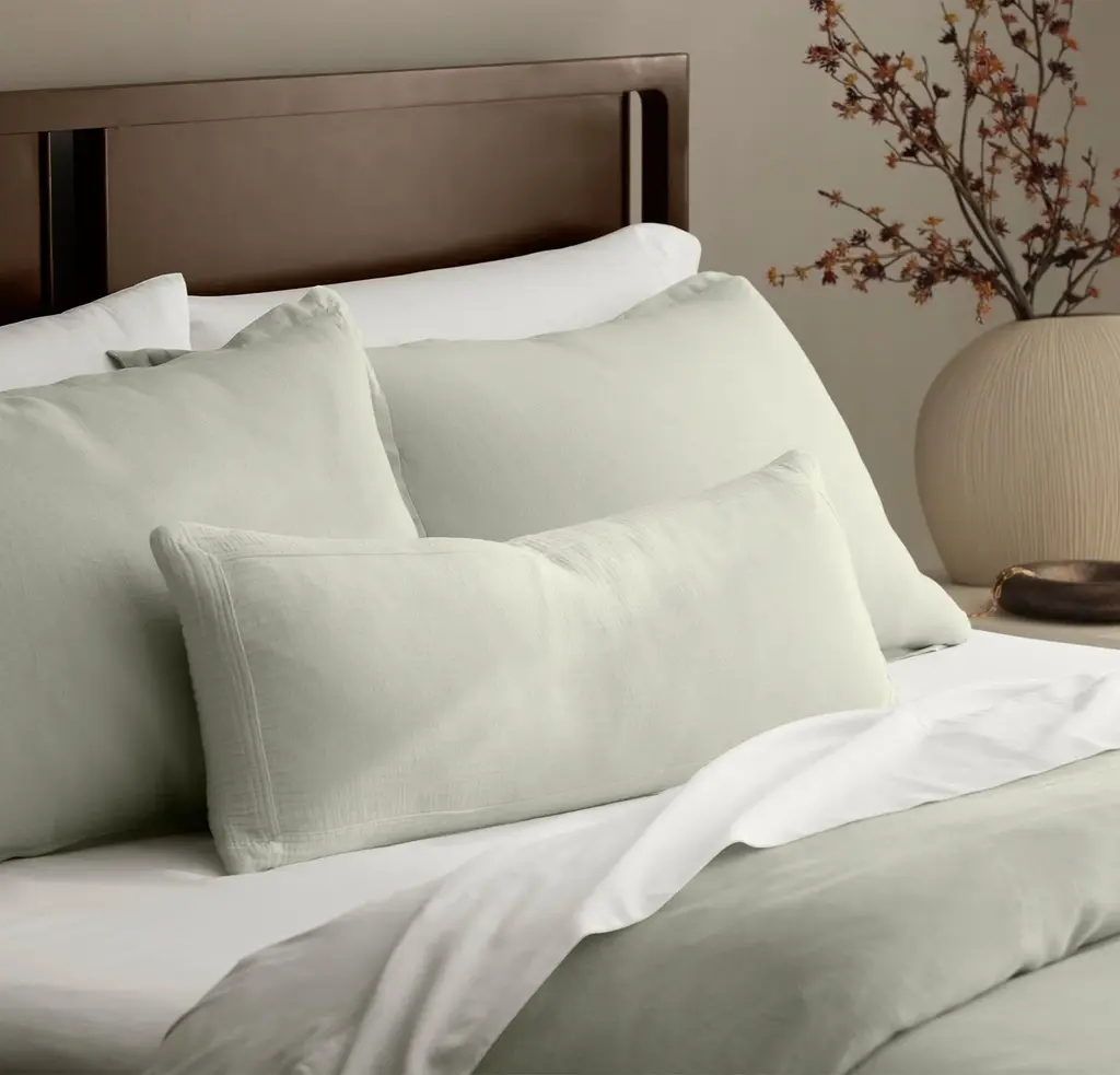 With a casual style and cloud-like touch, this Pillow Cover offers an exceptionally soft and inviting feel to your bedroom aesthetic. Its unique design starts with 4 lightweight layers of ultra-fine organic cotton, all pre-shrunk to bring natural folds with a distinct texture to each piece. Dyed and washed to give the fabric its subtle tonal gradient, this laid-back design brings the perfect finishing touch to your top of bed or living spaces. The Feel Cloud-like softness & texture with a gentle stretch The Look Casual yet refined with natural dimension