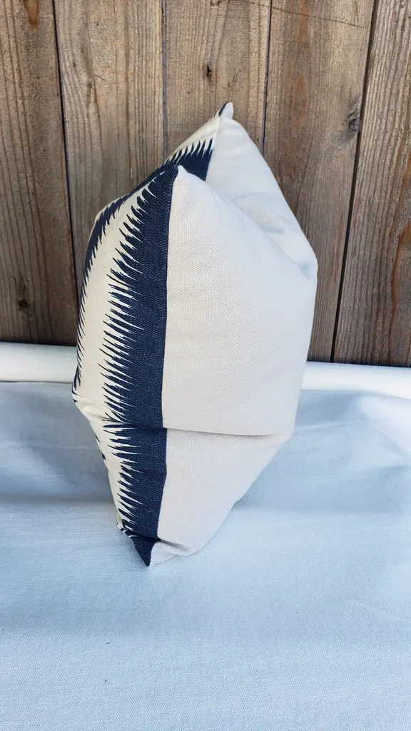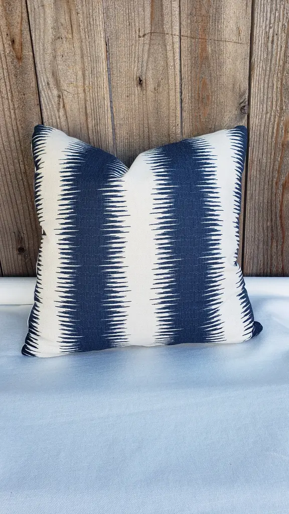 Duralee Abstract Indigo Front side. Back side :vory linen from Pindler Size: 20 x 20 knife edge Hidden zipper Duralee Information: Brand: Duralee Fabrics Book: Arbor Small Scale Print Pattern Name: Duralee-42384 Pattern Number: 338875 Style: ABSTRACT Color: 193-Indigo Content: 100% Cotton Width: 54" Vertical Repeat: 10.000" Horizontal Repeat: 7.000" Suggest Use: Multipurpose Item Type: Fabric Unit of Measure: Yard Origin: UNITED STATES