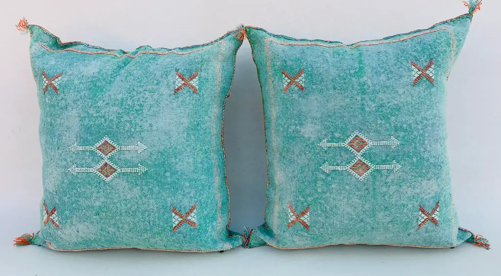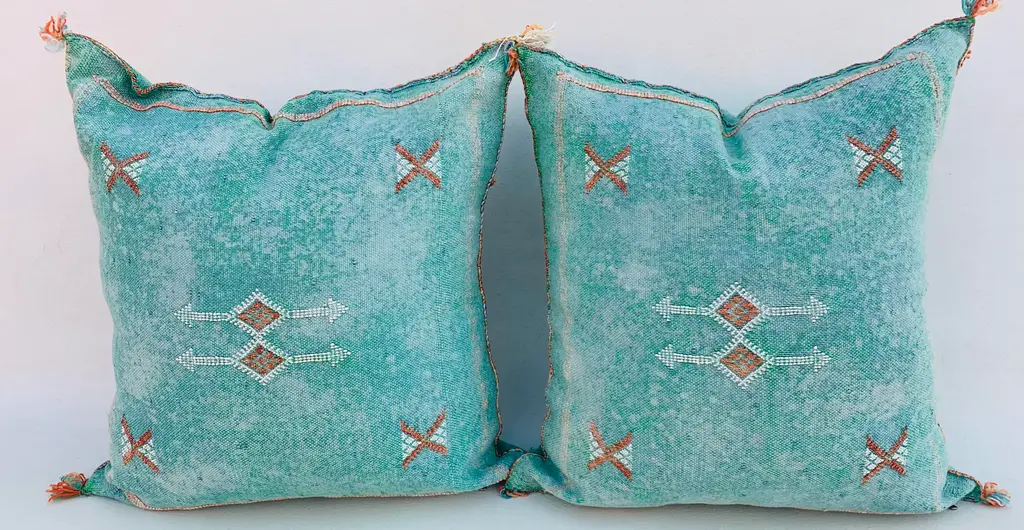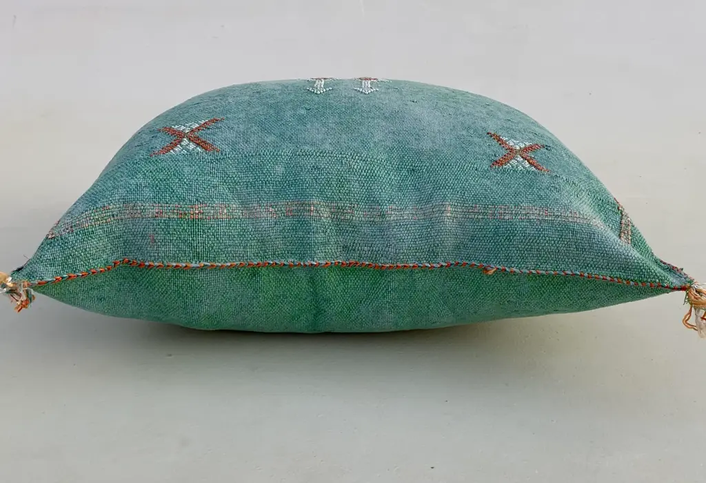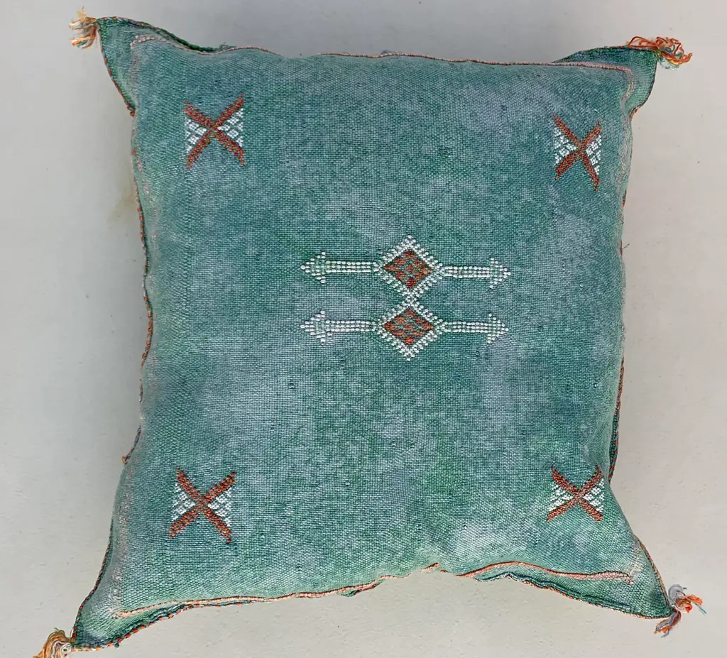 PILLOW DESCRIPTION : This cactus pillow was made purely Moroccan by the hands of traditional craftsmen, skilled Berbers, which bears ancient symbols, which makes it a unique masterpiece in addition to the possibility of using it as home furnishings. - It is completely handmade. - Without any chemicals - It is recommended to clean it Dry cleaning while avoiding contact with water. - Woven by hand from aloe Vera silk Sabra silk or vegetable silk. Features and Dimensions: - Approximate dimensions 19/19 in with a slight streak margin due to the manual component . - The product is without filler . - with or without Zipper opening on back. - Some slight differences in colors may be due to the photographic equipment. - Shipping: - Ships with the fastest means available and in the best conditions DHL - FED-EX. - The product is shipped in 3 to 5 working days. - We provide the customer with the tracking number of the product via the Internet. - We remain under reference to inquire about any information related to this product. The product is a natural artistic masterpiece by owning it that has decorated your home and helped to preserve the environment as well as encourage traditional manufacturers to Continuation.