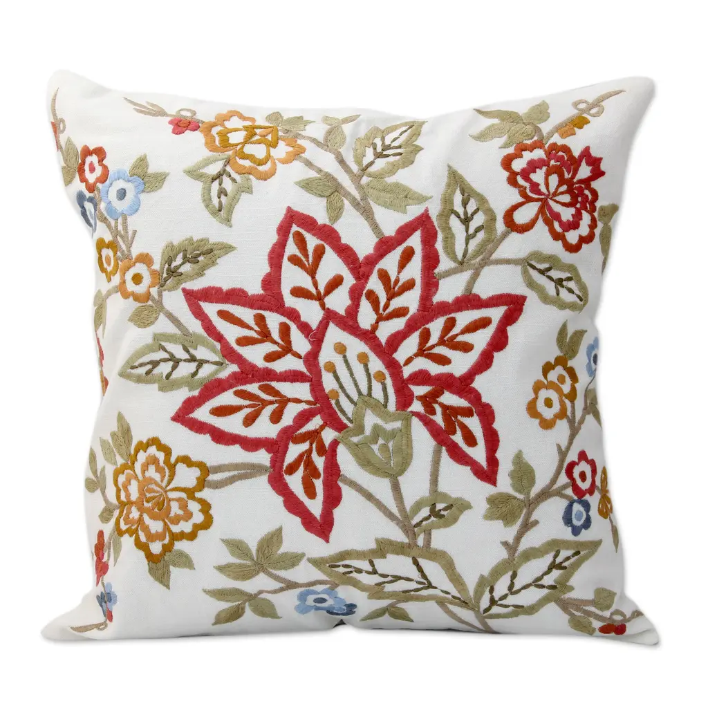 Embroidered Square Cotton Cushion Covers (Pair)- Jaipur Meadow