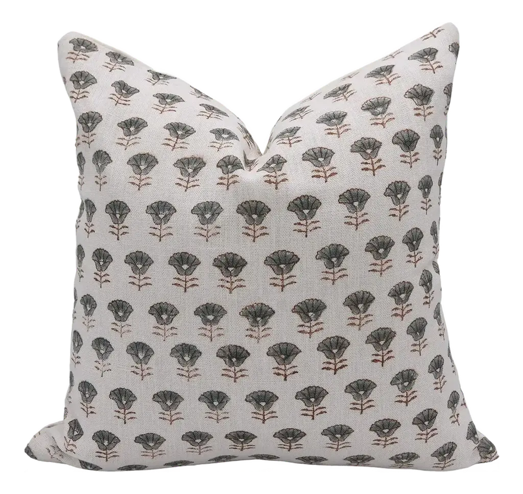 Fabdivine Artisan Block Print Throw Pillow Cover 20x20 Inch Thick Linen-Juju Flower