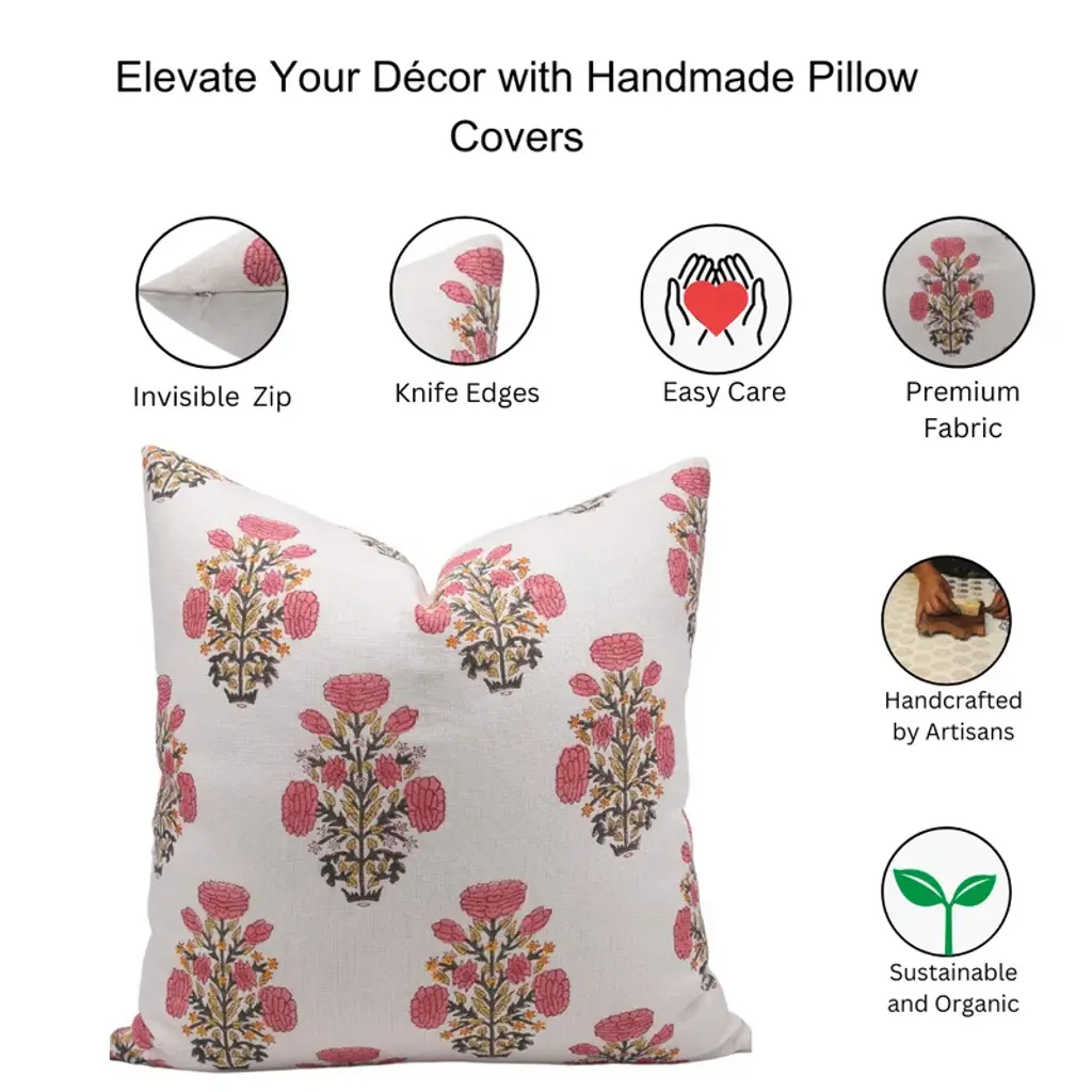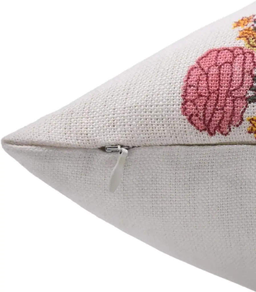 Fabdivine Floral Block Print Pillow Cover 14x20 Off-White Linen-Swadesh