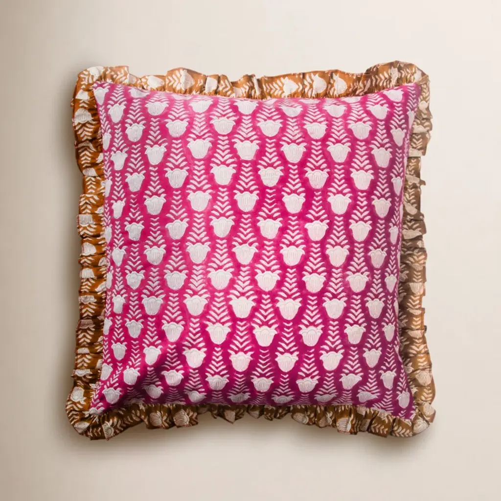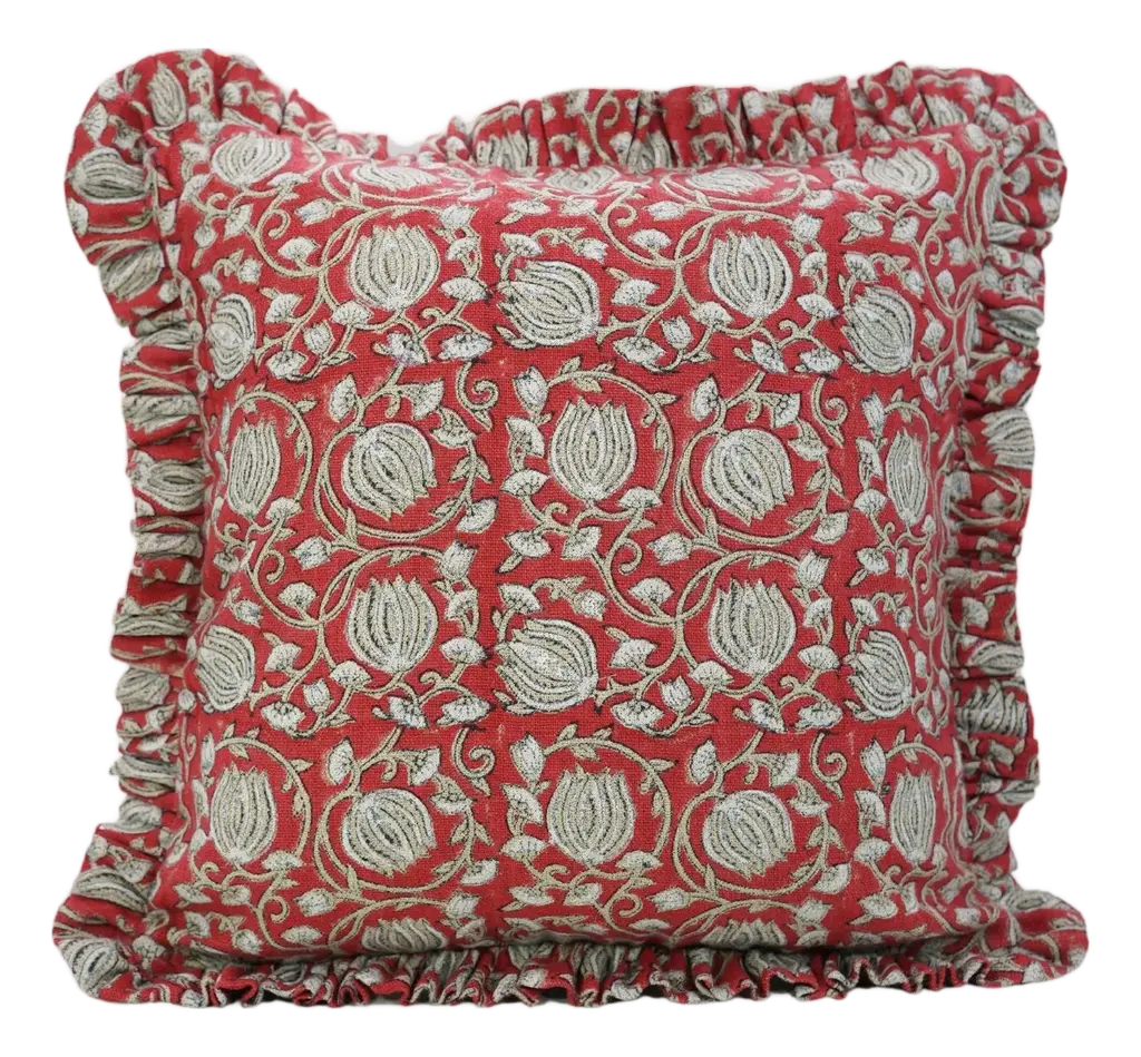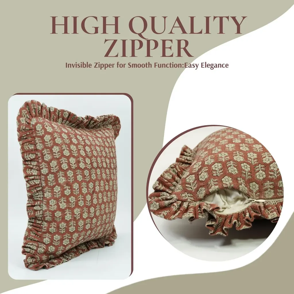 Add a timeless artisanal touch to your space with this block print handmade cushion cover, crafted from rich thick linen for durability and elegance. Finished with delicate frills and a clean invisible zipper, this cover brings heritage charm and modern sophistication into any interior setting. * Handmade block print cushion cover – Each piece reflects traditional craftsmanship and unique detailing. * Thick linen fabric – Textured, breathable, and ideal for long-lasting cushion use