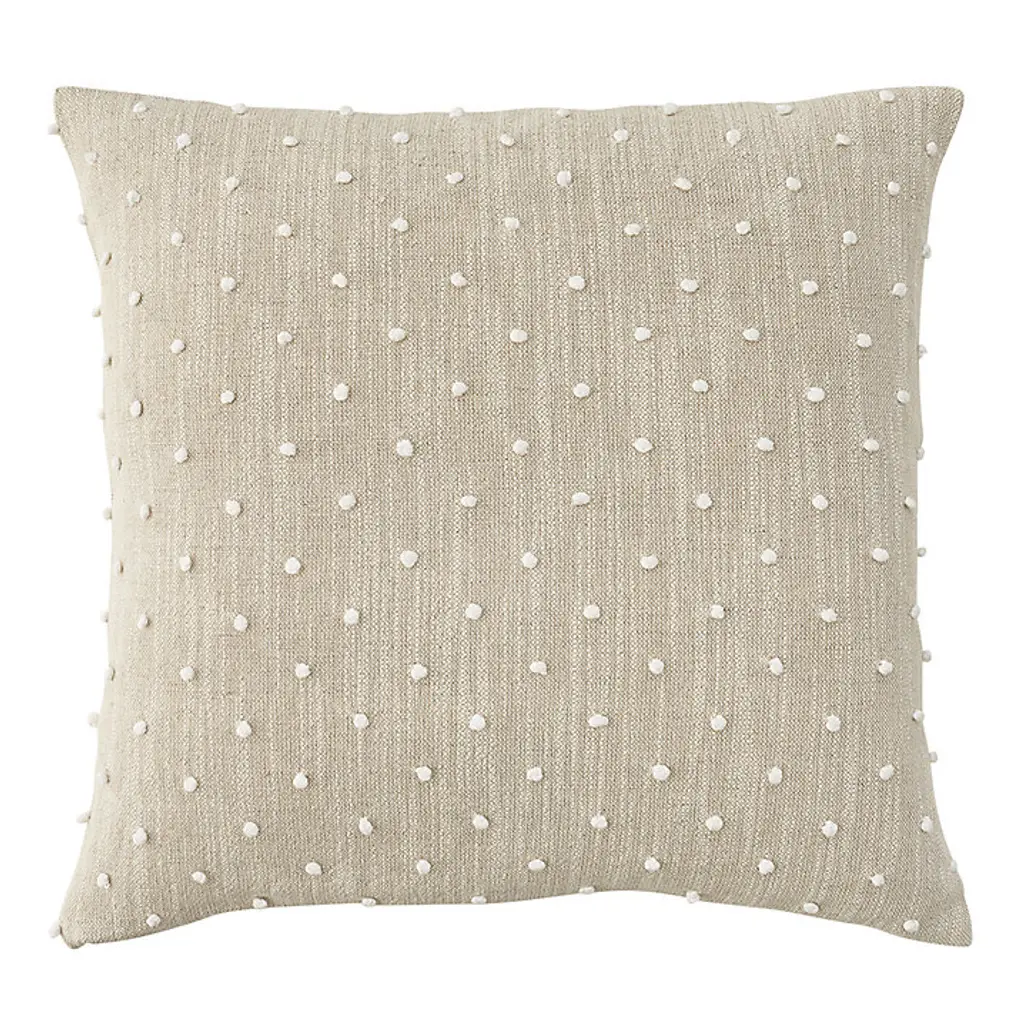Sumptuous texture with a sophisticated French accent. Our French Knot Pillow Cover is beautifully made of linen-cotton blend, and hand finished with delicate ivory French knot stitch details for subtle contrast. With its neutral tone-on-tone color, this decorative throw pillow layers effortlessly with any living room or bedroom decor. Linen French Knot Pillow Cover features: